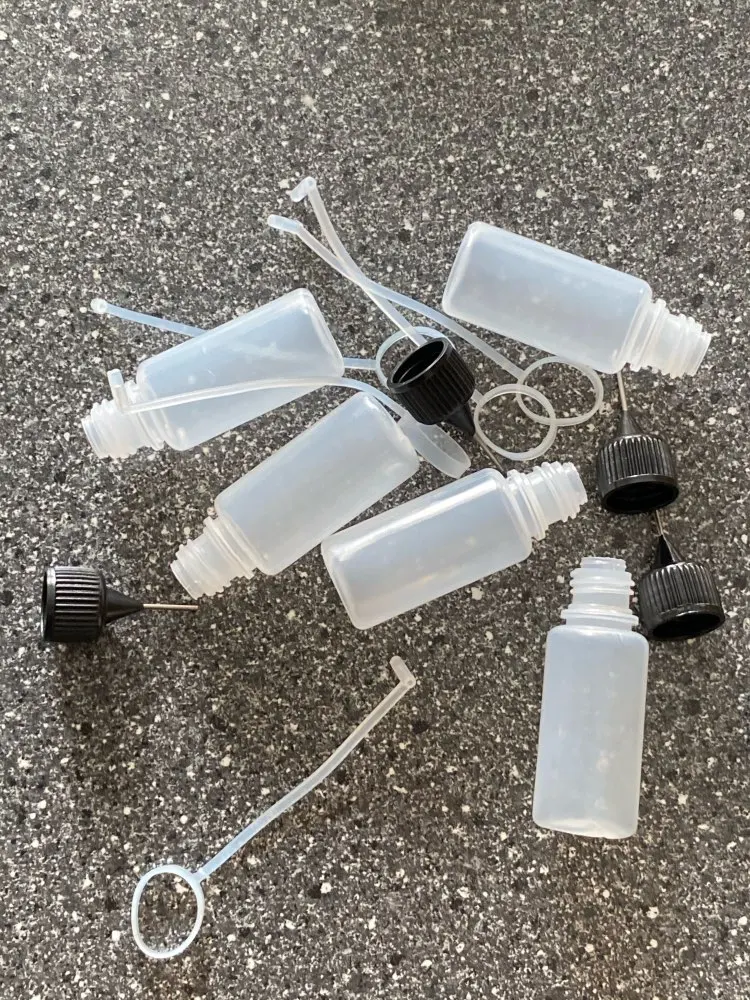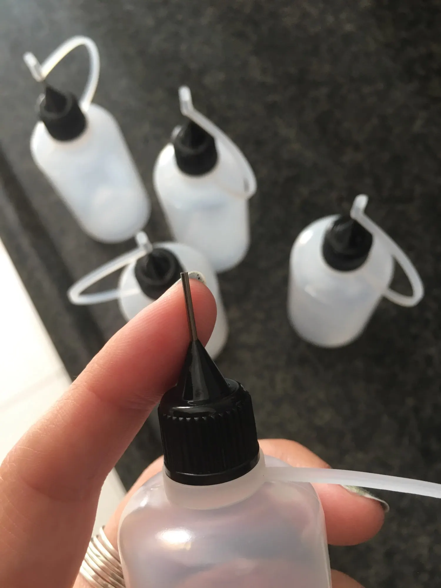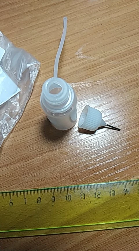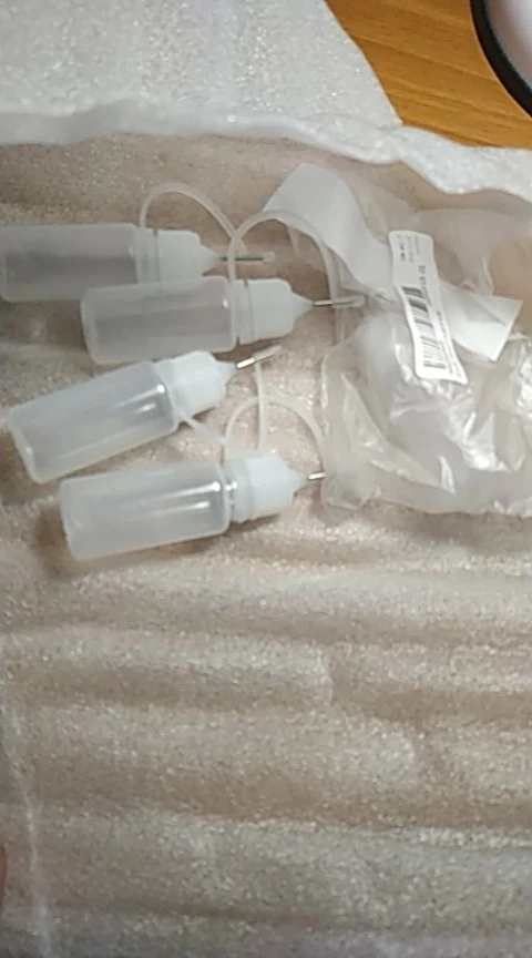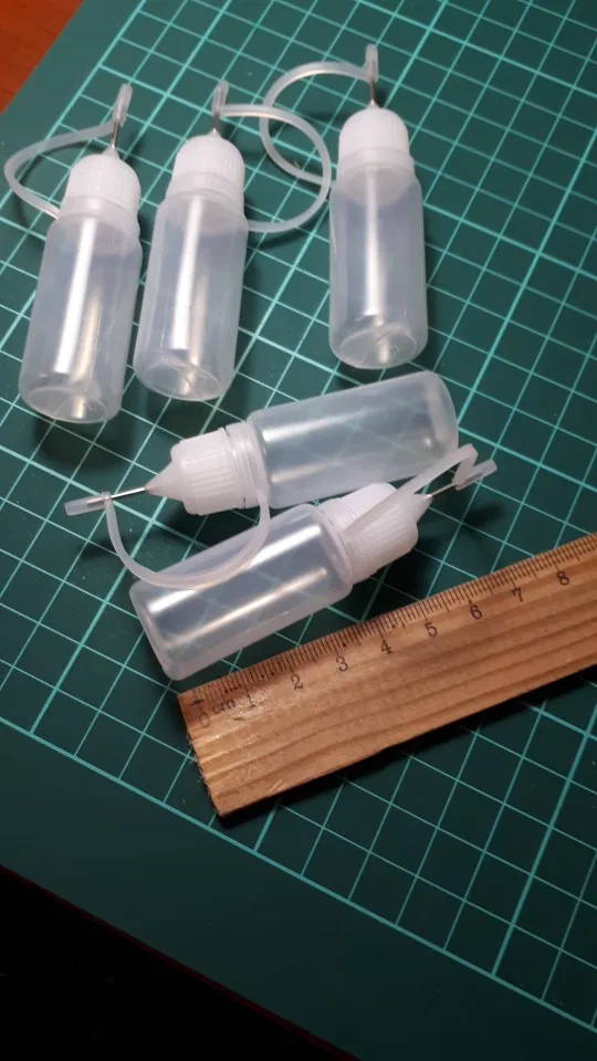 Доставка около месяца, отслеживаемый трек-номер. Бутылки хорошего качества, хорошо закручиваются, затычка для носика силиконовая, мягкая. Клей нужно наливать шприцом, так как горлышко в бутылке узкое. Бутылочки соответствуют характеристикам. Все целые. Очень удобные для дозировки клея.