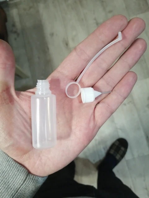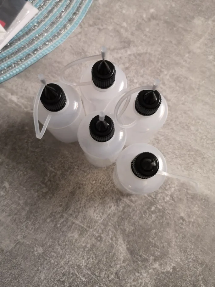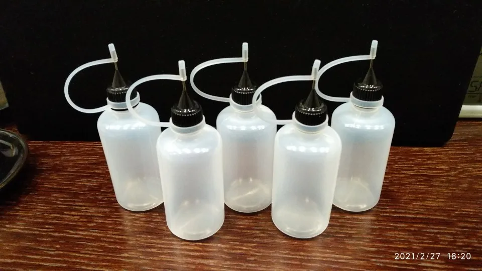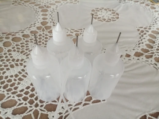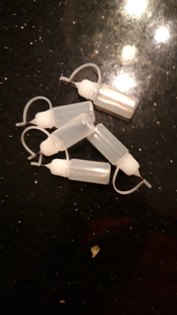 Хорошие маленькие бутылки. Я купил 5 из 50 мл и смог использовать их для украшения шоколада. Я не был уверен, что он будет течь от такого маленького наконечника. Отлично подходит для нефти во время бурения отверстий в мастерской или письма с краской и т. д. разумное время доставки, хорошо в течение заявленного времени ожидания.