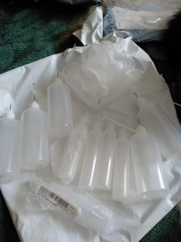 быстрая доставка Новой почтой до Украины 18 дней, отслеживался хорошо, упакован надёжно, всё как на фото и в описании, хорошие бутылочки, только горлышко узковато для наливания клея, надо приспособиться, продавец хороший, положили запасную силиконовую крышечку, продавцу и магазину спасибо, можно сотрудничать