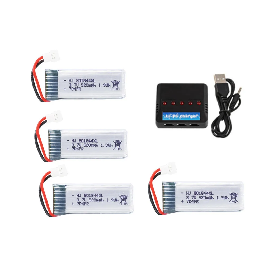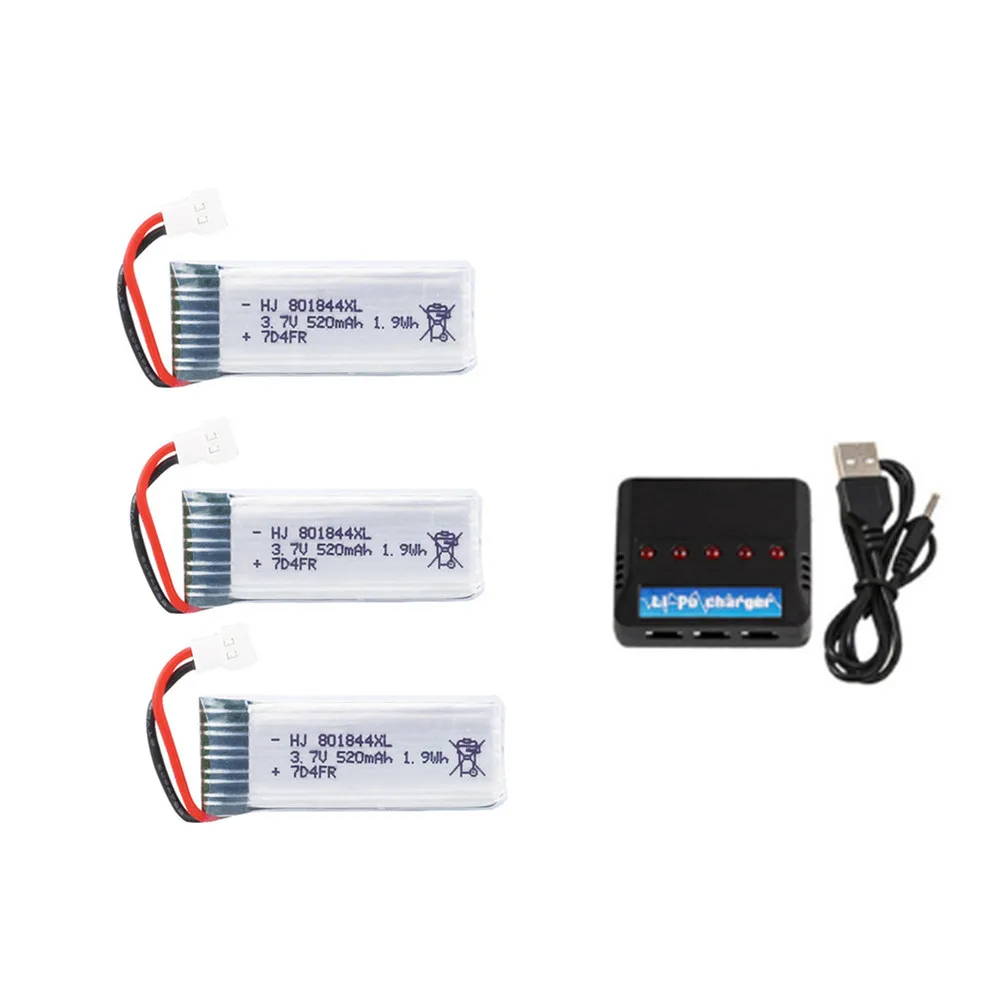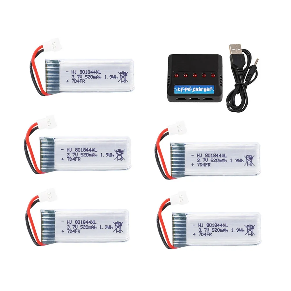 801844 3,7 В 520 мАч 25c Lipo аккумулятор и 5 в 1 зарядное устройство для H107P RC камера Drone аксессуары 3,7 В аккумулятор 1 шт. до 5 шт.