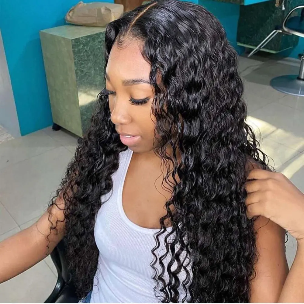 Фэнтези-красавица, черная волна воды, синтетические кружевные фронтальные парики, термостойкие Свободные Вьющиеся полузавязанные вручную фронтальные парики с детскими волосами