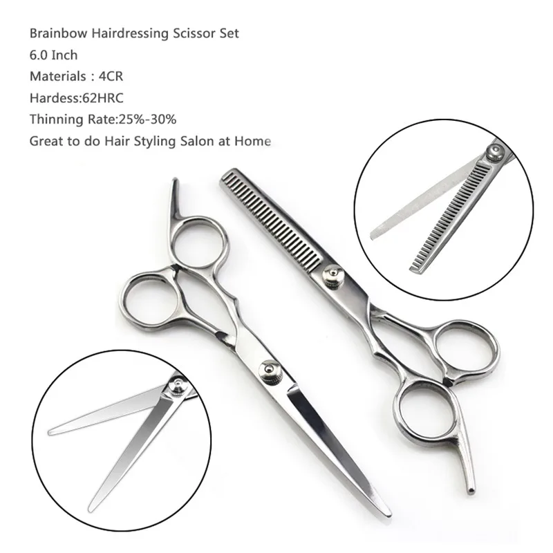 6 Inch Cutting Thinning Styling Tool Hair Scissors Stainless Steel Salon Hairdressing Shears Regular Flat Teeth Blades