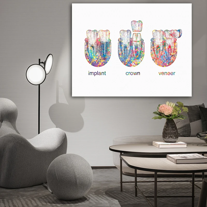 Настенная картина WANGART с цветным принтом зубов, холст подарок для дантиста, гигиенист, офисный декор, декор для клиники