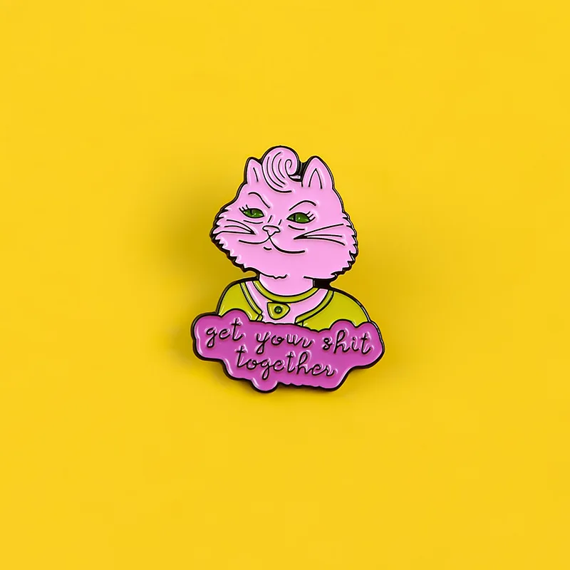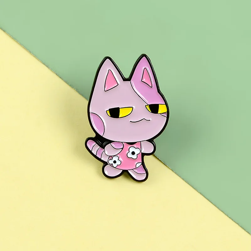 Металлическая эмалированная брошь в виде мультяшного полного кота