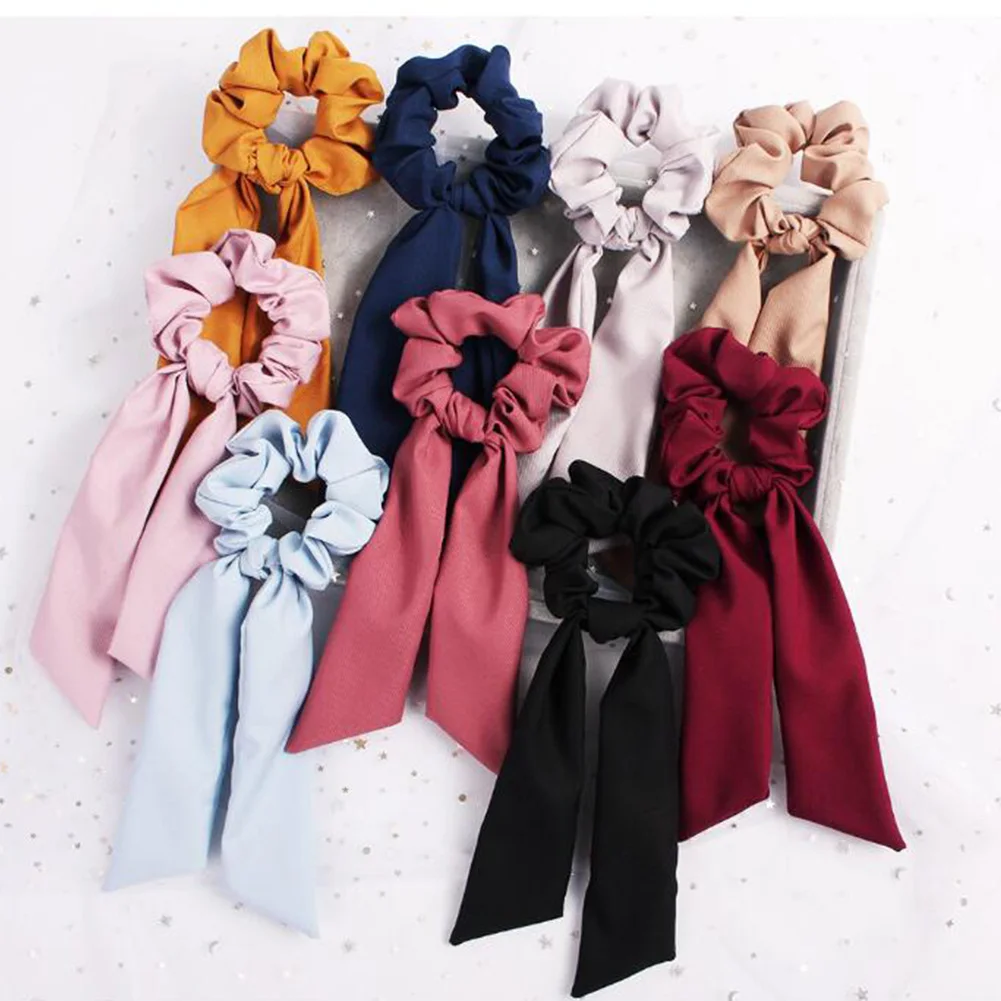 Твердые Цвет длинные растяжки ободки для волос для женщин, обтянутая тканью; Резинка для хвоста резинки для волос аксессуары для волос для девушек галстуки женские аксессуары для волос
