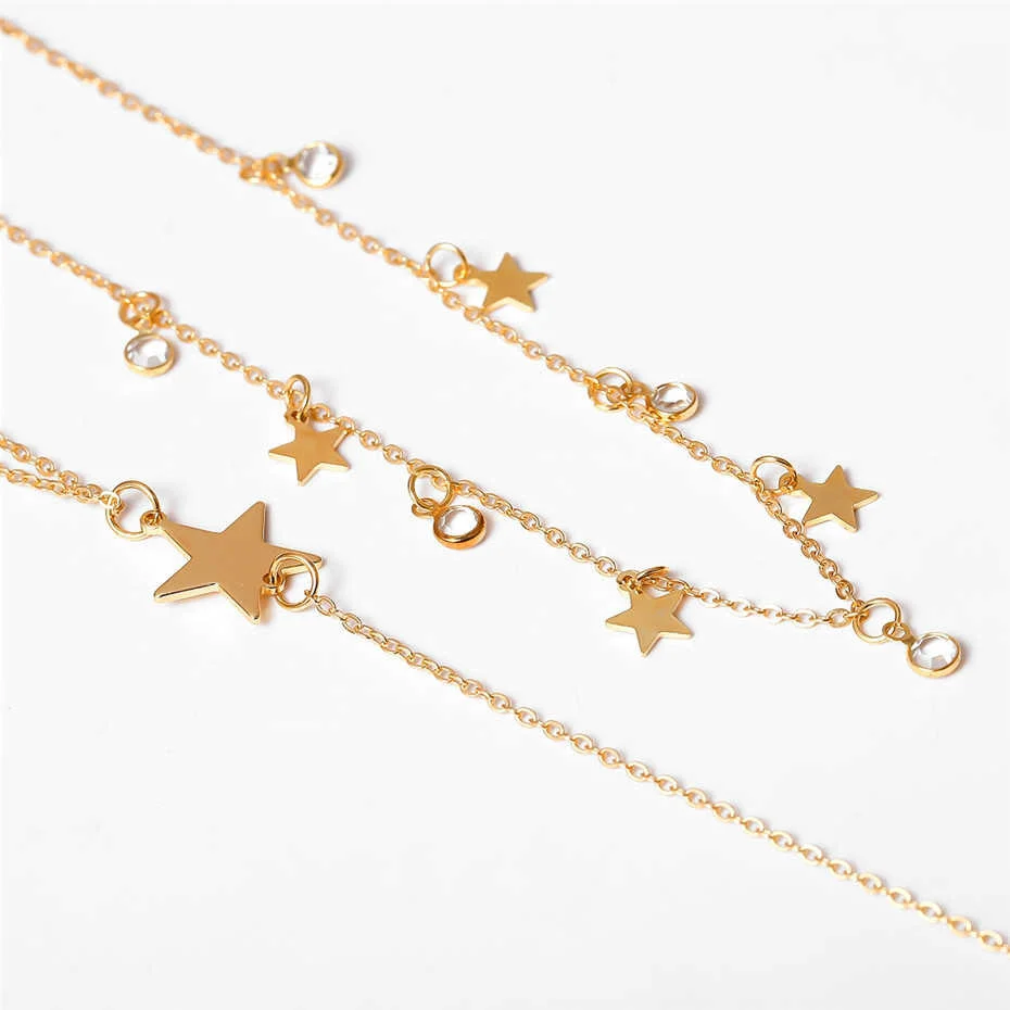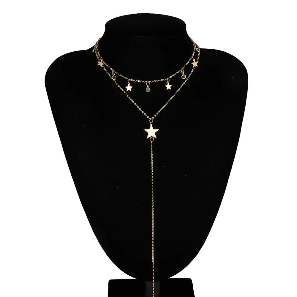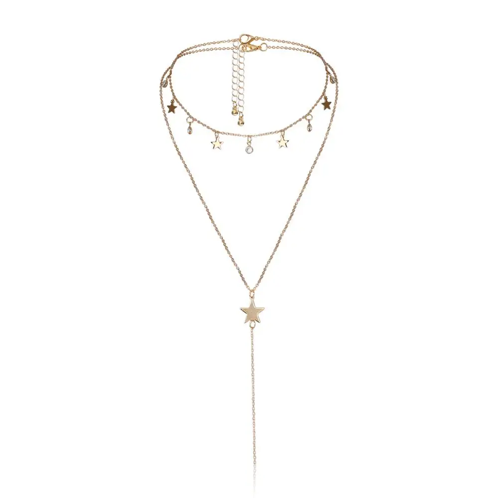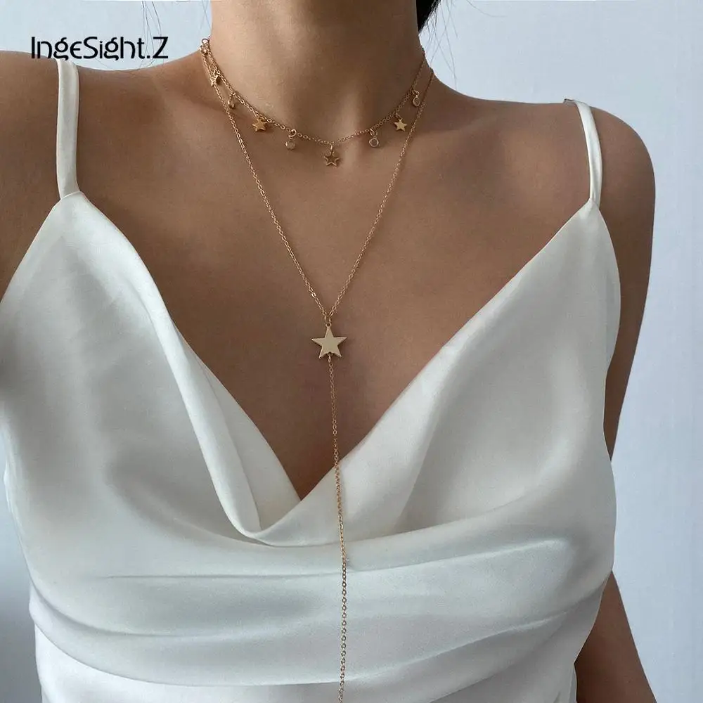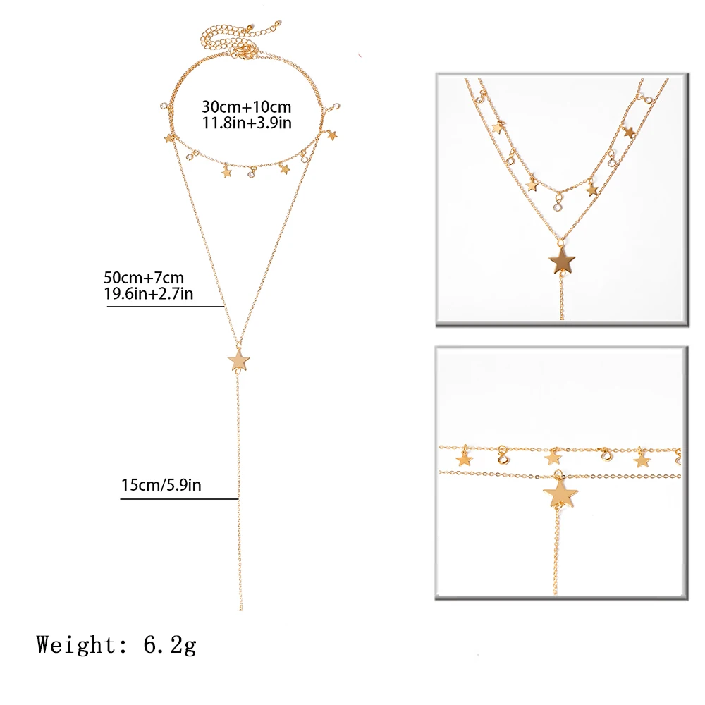IngeSight.Z 2 шт./компл. корейское многослойное ожерелье-чокер с кристаллами массивное медное длинное ожерелье со звездой и пентаграммой для женщин ювелирные изделияСтиль: МодныйМатериал: медь, железо Цвет: Золотой/Серебряный Вес: 6,2 г Размер: как на картинке