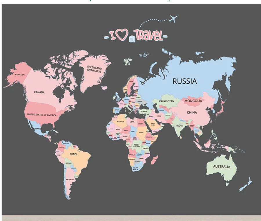 Цветные буквы, Карта мира, самодельные виниловые наклейки на стену ...