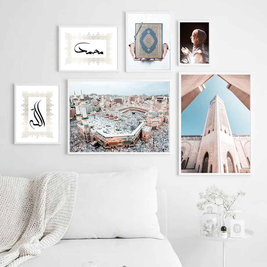 Настенная картина исламский священный город, мечеть, цитаты, Картина на холсте, скандинавские постеры и принты, настенные картины для декора гостиной