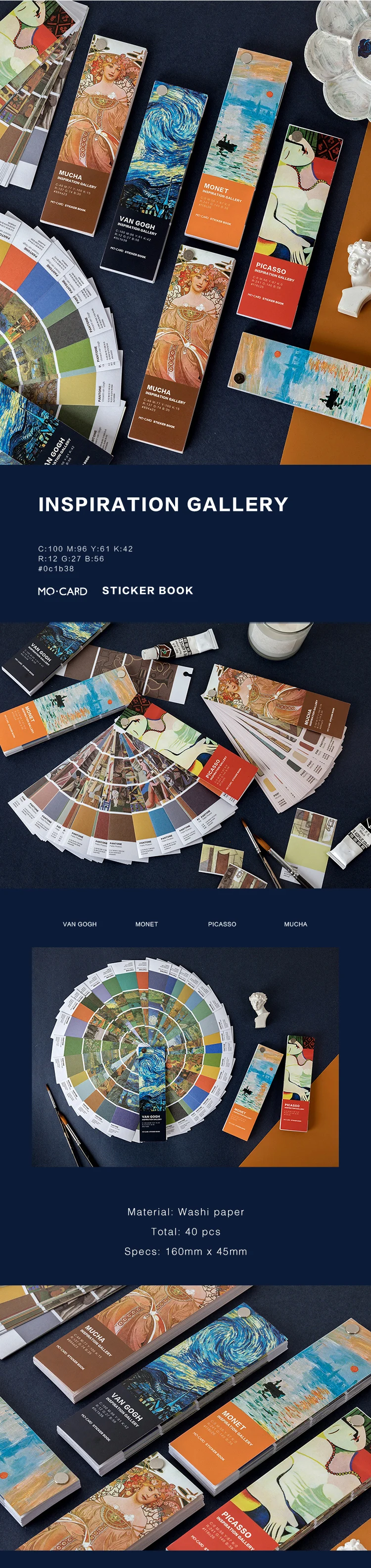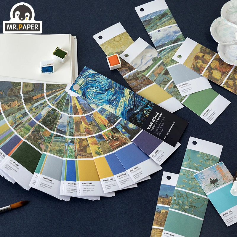 Бумажная наклейка Mr.paper 40 шт., бумажная наклейка известного художника Ван Гоша пантона Васи, блокнот с креативными пулями, альбом для скрапбукинга, декоративная наклейка