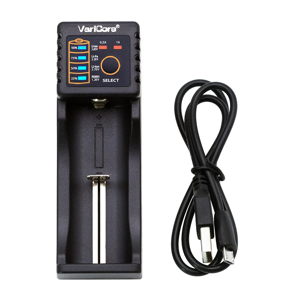 Ключевые особенности:• Система управления зарядкой с одним слотом, входной порт Micro USB DC 5 V• Ток заряда 500/1000 мАч для выбора• Светодиодный индикатор показывает состояние заряда напряжения и тока• Автоматическая идентификация литий-ионных и никель-металлических гидридных батарей• Выбор в ручном режиме посредством короткого нажатия на кнопку "Режим" батареи IMR (3,85 V лития ионный) и LiFePO4 батарея (3,2 V)• Функция пуска-защита от 0 В батареи PCM.• Защита от перезаряда и переразряда• Определение поврежденных батарей• Постоянное напряжение и ток зарядкиТехнические характеристики V20i• Вход: Micro USB DC 5 V / 2A (мин.)• Выход напряжение: DC 4,2 V 500 мА/1000 мА для батарей Li-Ion (литий-ионных)• Постоянный ток 4,35 в 500 мА/1000 мА для IMR• Постоянный ток 3,65 в 500 мА/1000 мА для LeFePO4• Постоянный ток 1,48 в 500 мА/1000 мА для NiMH / NI-Cd• Постоянное напряжение при выключенном токе менее 100 мА• Ток в режиме ожидания: не более 15 мАV20i Совместимость с батареей:• Li-ion / IMR / LiFePO4: 26650, 18650, 18490, 17500, 16340 (RCR123), 14500, 10440• NiMH / Cd: AA, AAA, A, SC, C Размер• Размер: 112x60x30 ммТехнические характеристики V10• Вход: Micro-USB, постоянный ток, 5 В/1A (мин).• Выход напряжение: DC 4,2 V 500 мА/1000 мА для батарей Li-Ion (литий-ионных)• Постоянный ток 4,35 в 500 мА/1000 мА для IMR• Постоянный ток 3,65 в 500 мА/1000 мА для LeFePO4• Постоянный ток 1,48 в 500 мА/1000 мА для NiMH / NI-Cd• Постоянное напряжение при выключенном токе менее 100 мА• Ток в режиме ожидания: не более 15 мАСовместимость с батареей V10:• Li-ion / IMR / LiFePO4: 26650, 18650, 18490, 17500, 16340 (RCR123), 14500, 10440• NiMG / Cd: AA, AAA, A, SC, C Размер