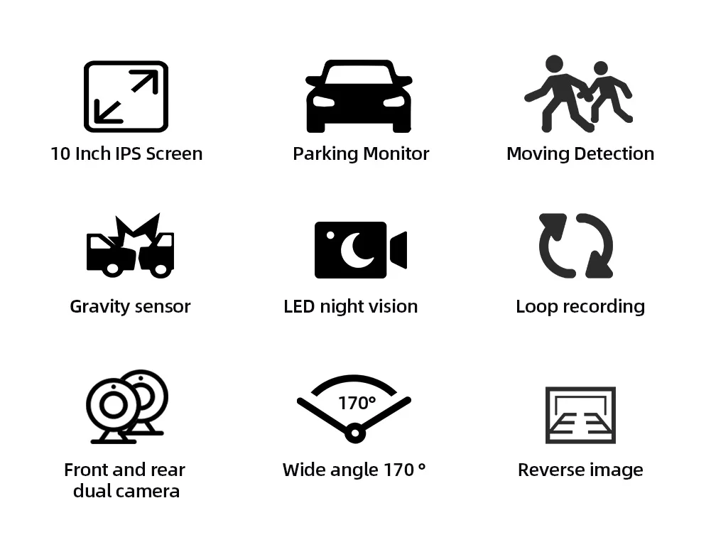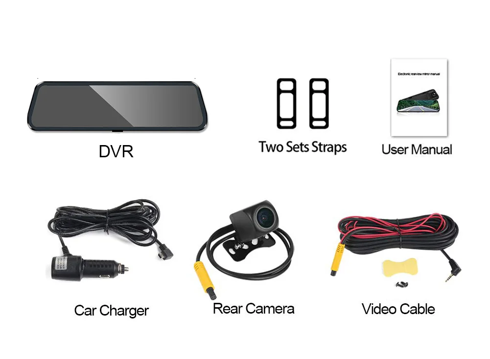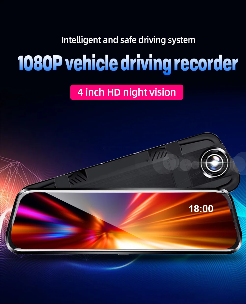 Автомобильный регистратор-зеркало заднего вида, видеорегистратор с двойной камерой Full HD 1080P и монитором 10''