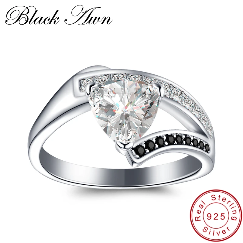 BLACK AWN Трендовое ювелирное изделие из серебра 925 пробы 3,3 г, черные кольца со шпинелью для женщин, ювелирное изделие, подарок для девочек C333