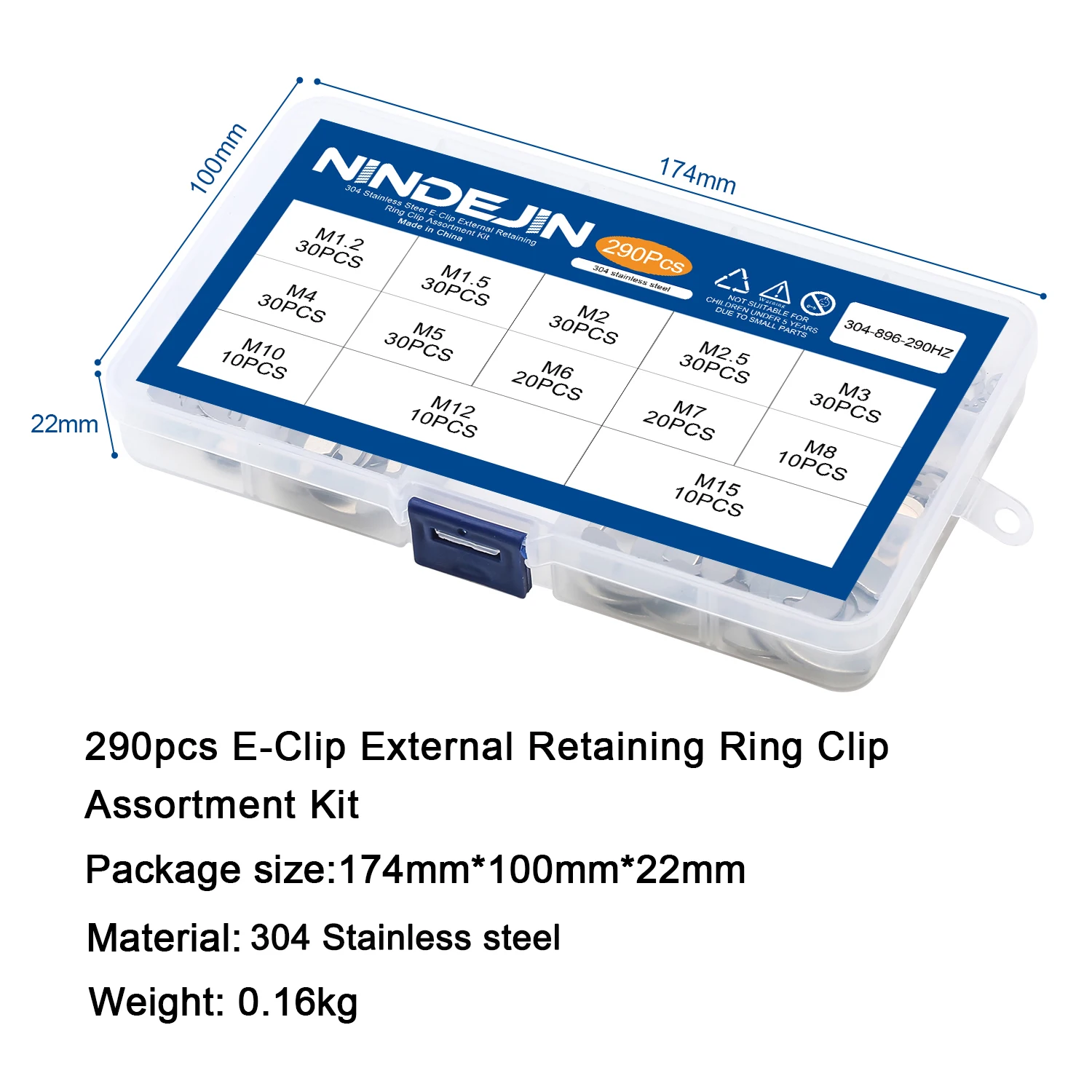 290 шт.компл. E клип набор circlip комплект шайб в ассортименте 304 нержавеющая сталь 1,2-15 мм Внешний c зажим оснастки для вала