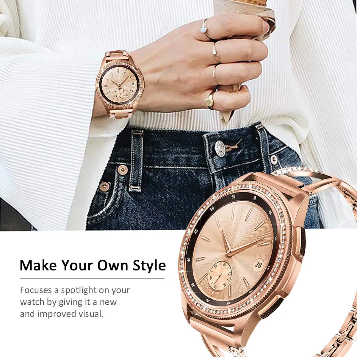 Сделайте свой собственный стиль-Станьте пионером стиля. Сделайте акцент на своей эксклюзивной моде, добавив акцент вашему аксессуару. Не позволяйте вашим часам быть больным пальцем ваших нарядов. Стайлинг оправы Ringke создает акцент на ваших часах, придавая им новый и улучшенный вид.