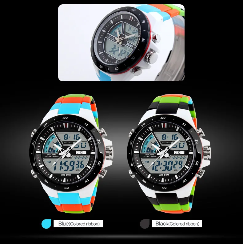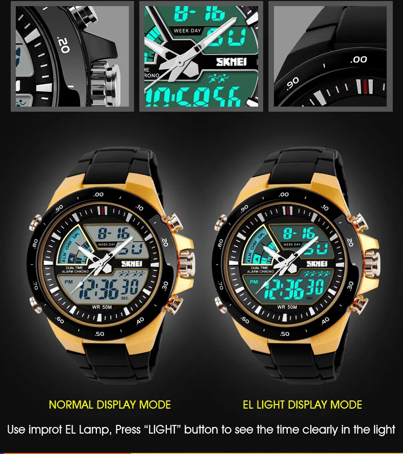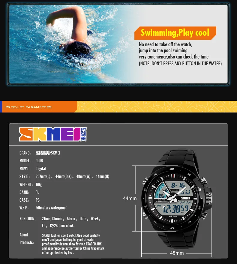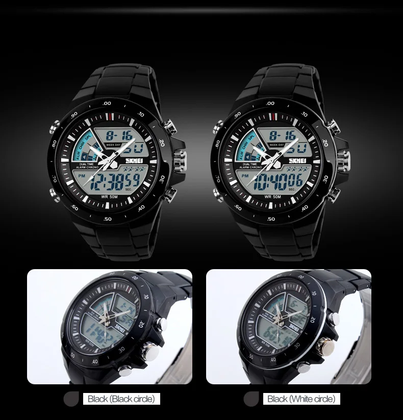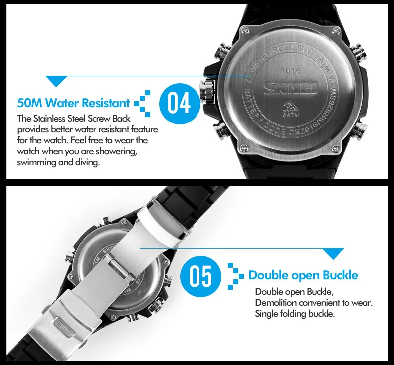 Часы наручные SKMEI мужские спортивные, модные с двойным дисплеем, водонепроницаемость 50 м, 1016
