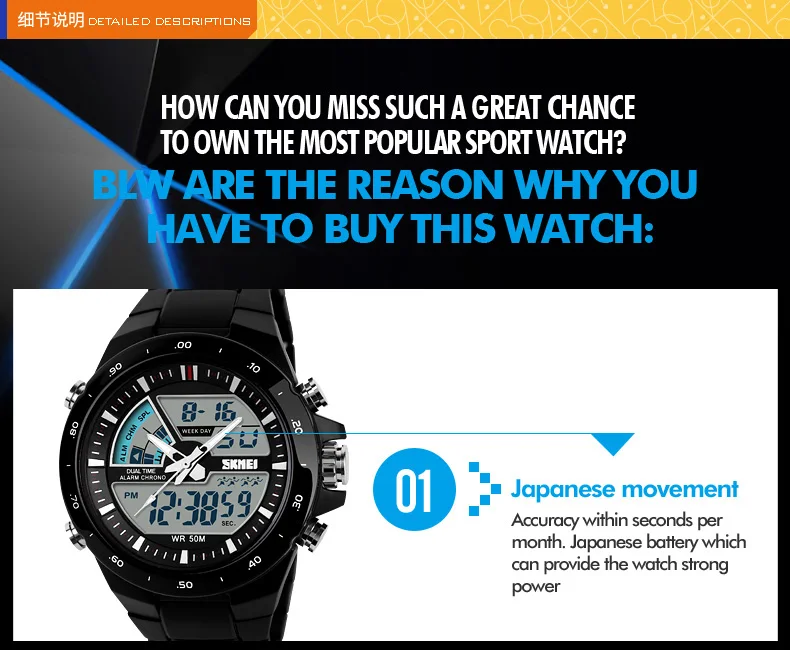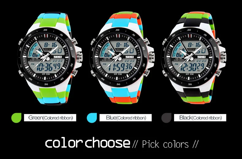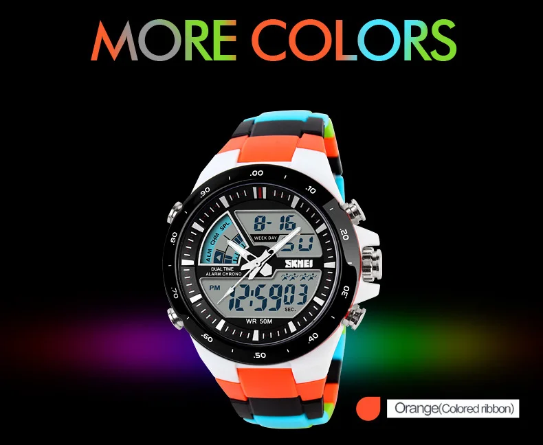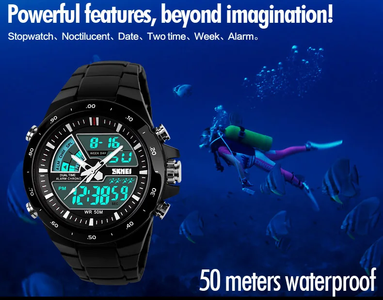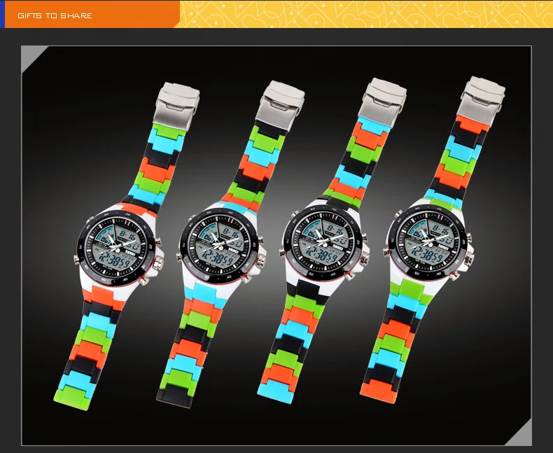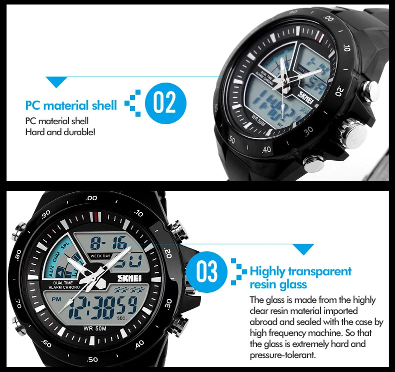 Часы наручные SKMEI мужские спортивные, модные с двойным дисплеем, водонепроницаемость 50 м, 1016