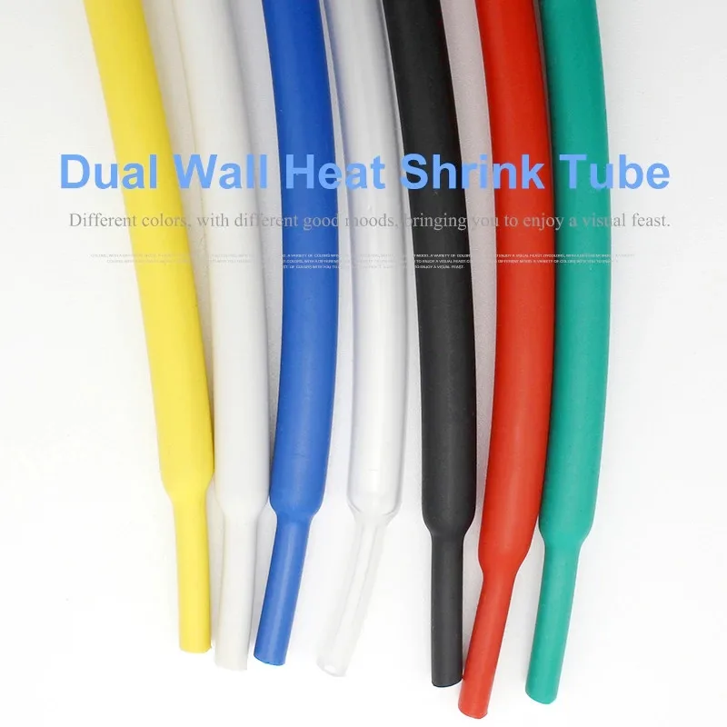 Термоусадочная трубка с двойными стенками, 1 м, 1,62,43,24,86,47,9 мм, толстый клей, коэффициент 3:1, набор термоусадочных трубок с клейкой облицовкой