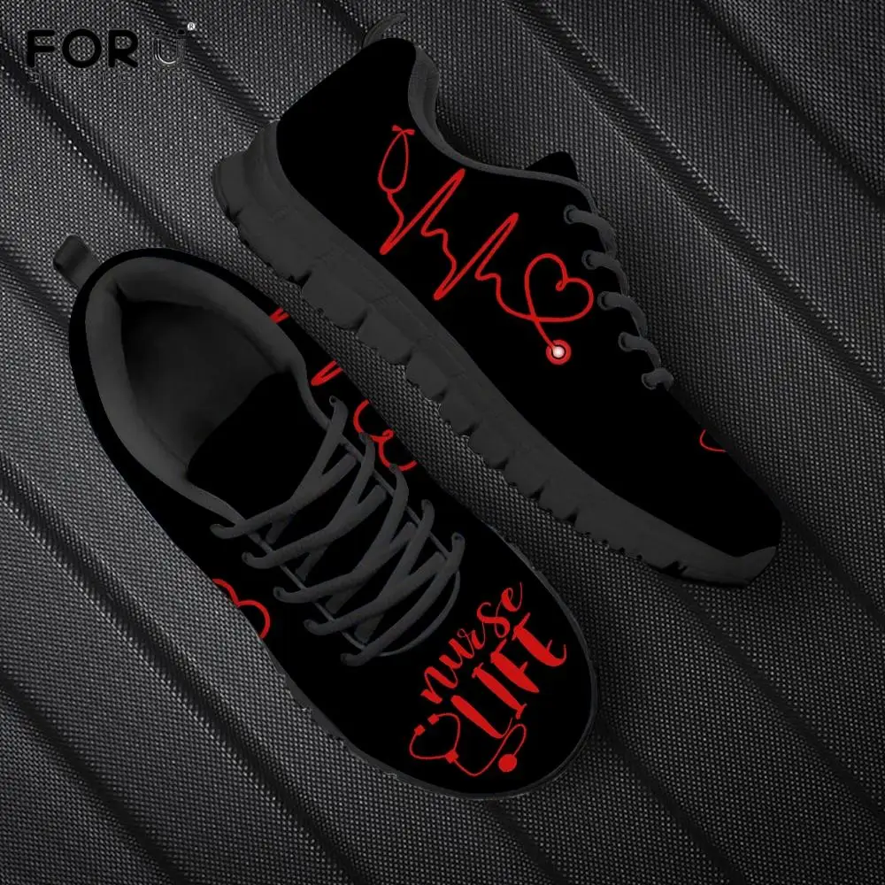 Женские кроссовки со шнуровкой FORUDESIGNS, повседневные весенне-осенние кроссовки на плоской подошве с 3D рисунком в виде стетоскопа