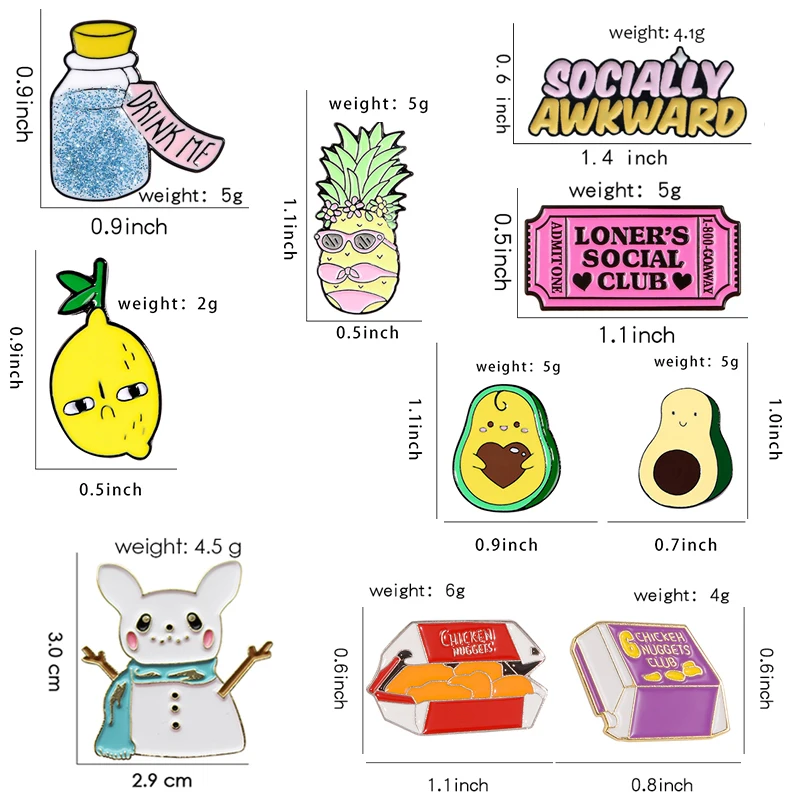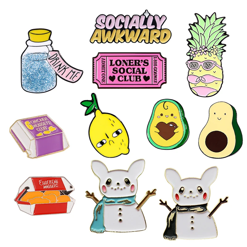 Эмалированная брошь в форме фрукта, ананаса, авокадо, лимона, жареной курицы, напитка, снеговика