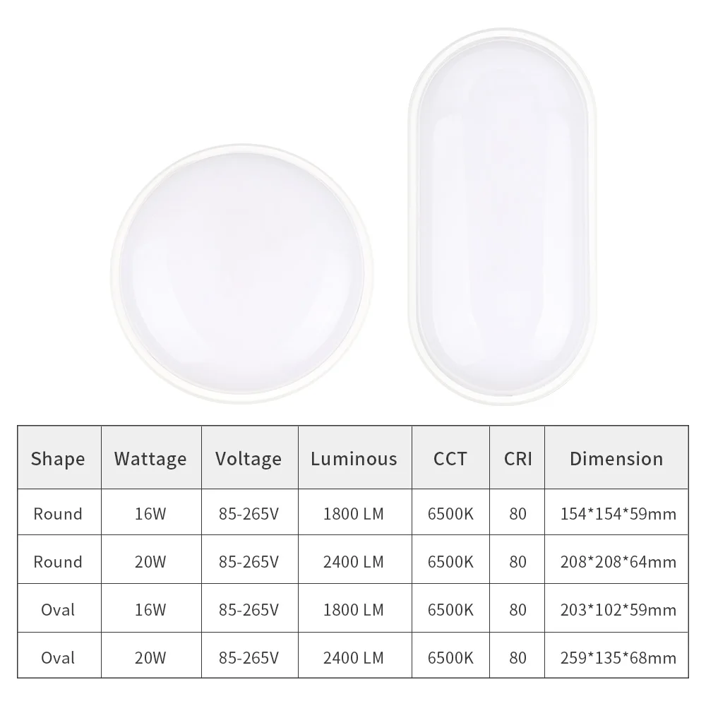 Форма: круглая/ОвальнаяВход: ac220вМощность: 16 Вт/20 ВтЦвет: белый светильник 6500KСпособ установки: поверхностное креплениеВодонепроницаемость: наружное влагостойкое/Внутреннее освещениеПодходит для: наружного балкона, прохода, холодной комнаты, ванной комнаты, спальни...