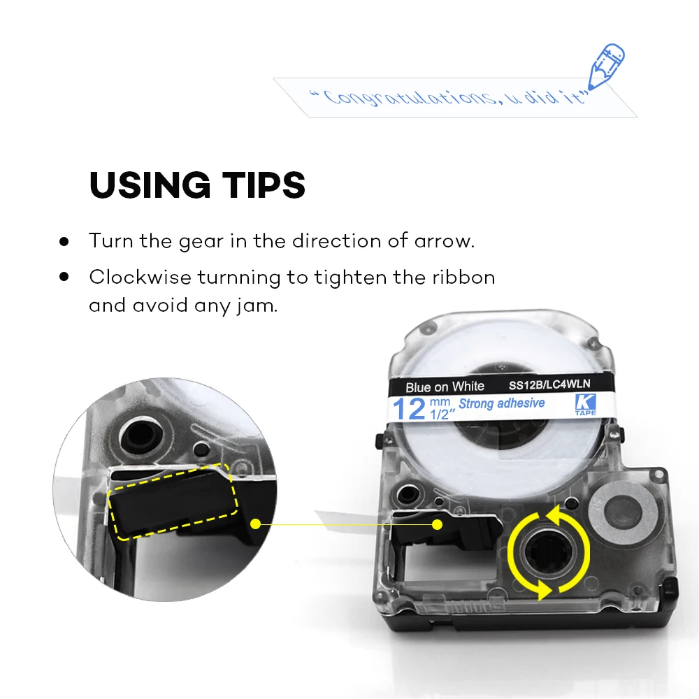 12 мм синий на белом ss12b W стандартная клейкая лента для этикеток kingjimepson maker LW300 LW400 LC-4WLN