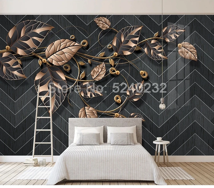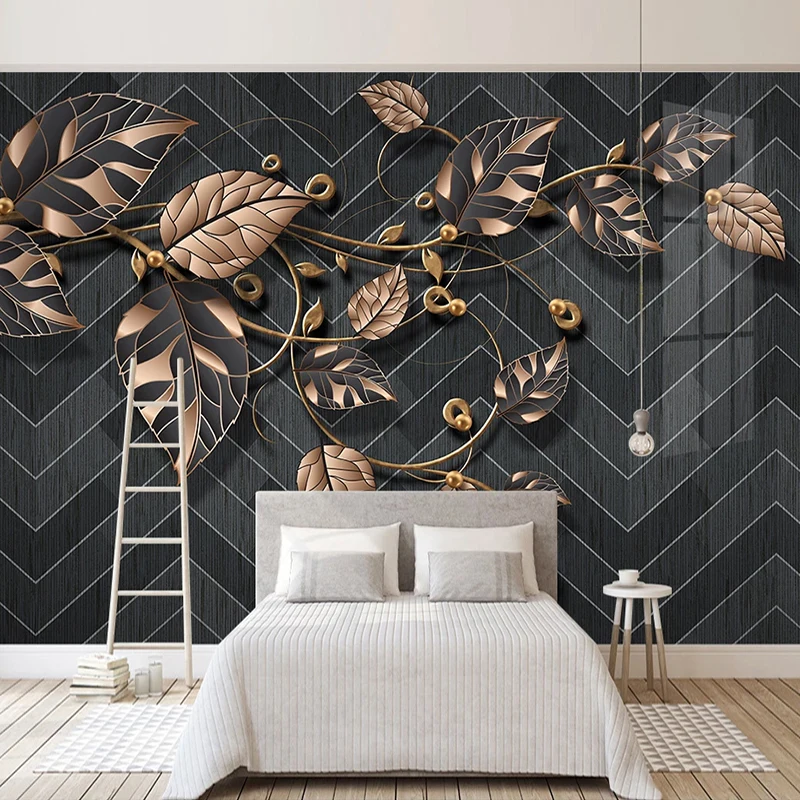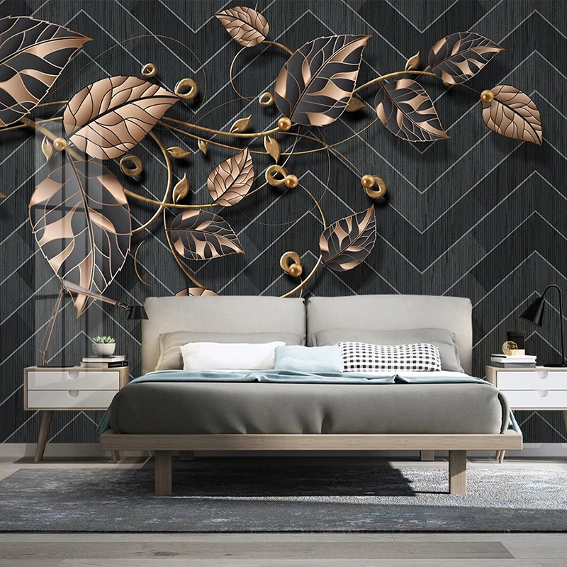Пользовательские фото скандинавские современные черные фотообои с геометрическим рисунком, обои золотые растения листья Ресторан гостиная диван Декор настенная живопись