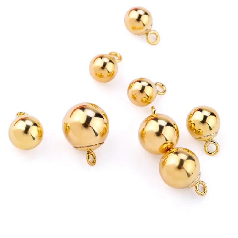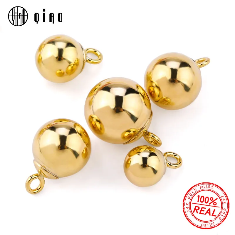 Круглый кулон с позолотой 14 карат, 1 шт., 4-8 мм, Гладкие бусины-шарики для украшений сделай сам, для изготовления браслетов, ожерелий, ювелирных изделий