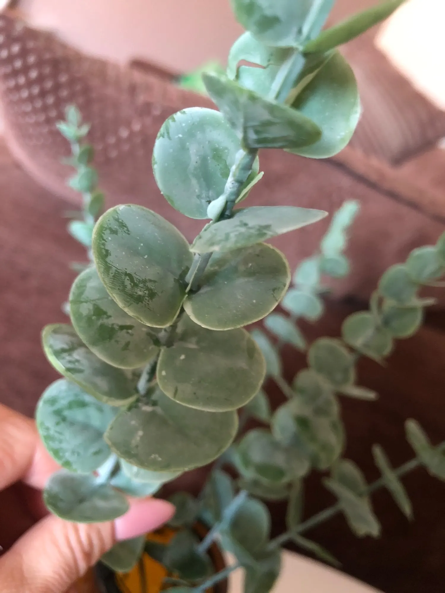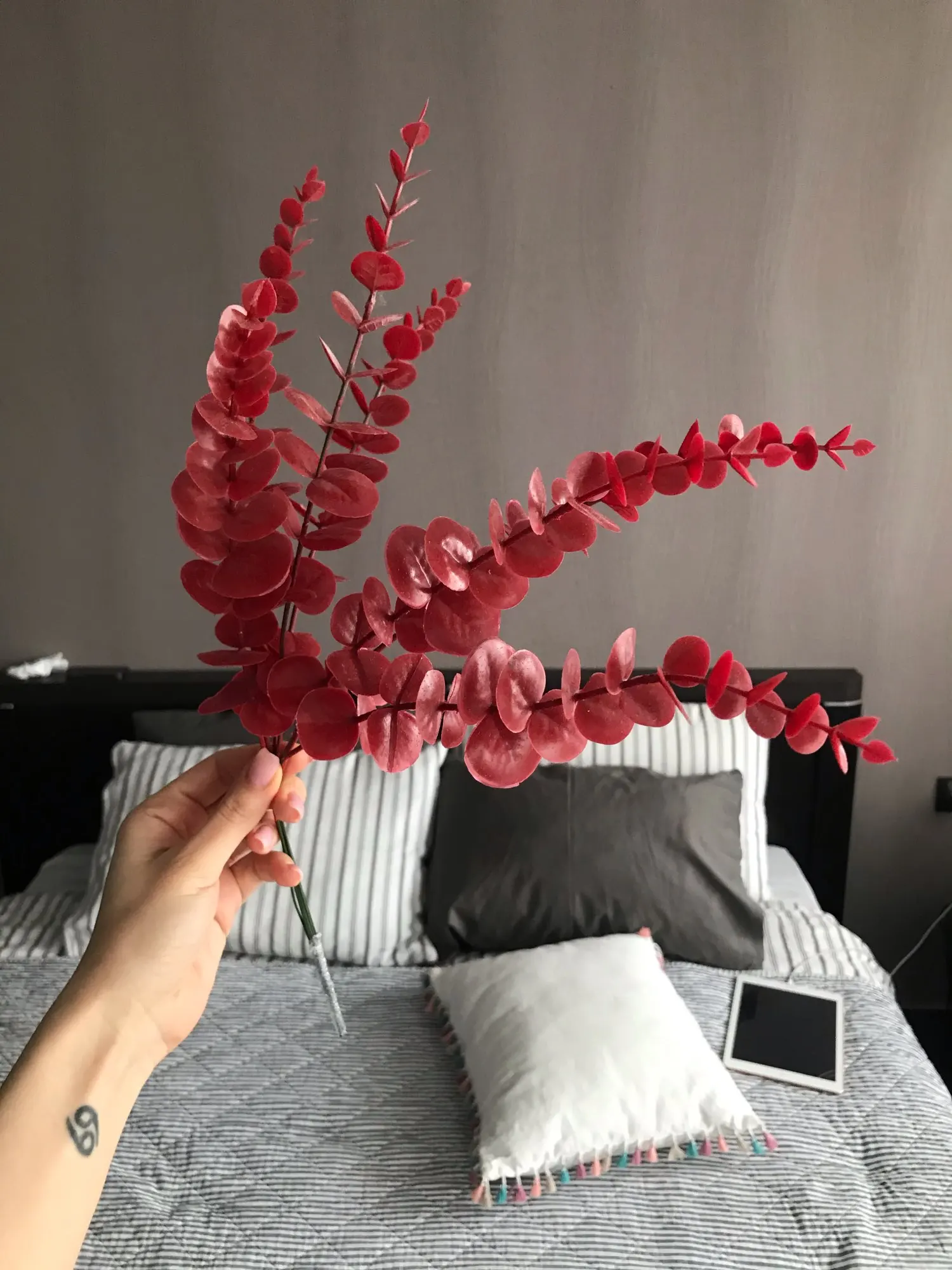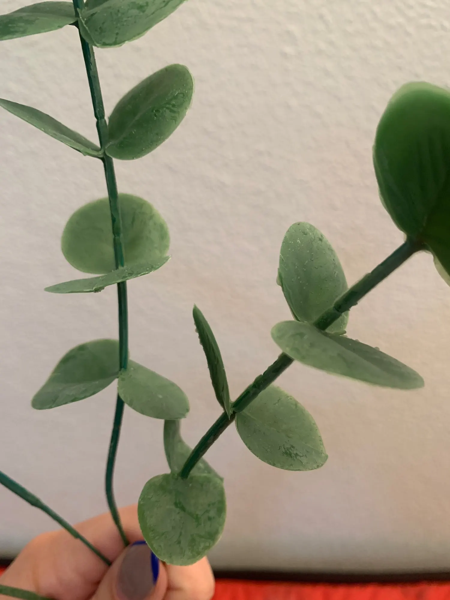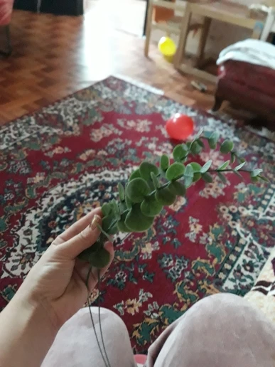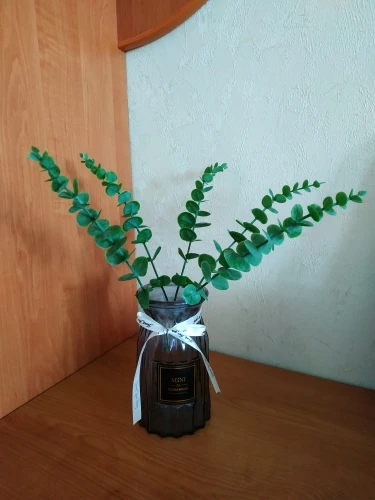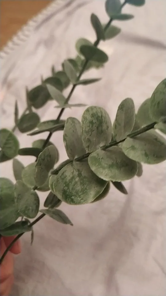 Очень понравилась веточка,выглядит очень натурально ,именно из-за налёта,дочь думала,что она настоящая,сказала,что эвкалипт,между прочим,надо держать в воде)))))