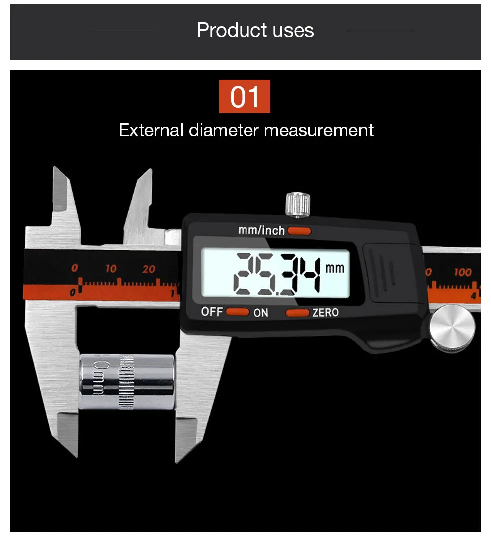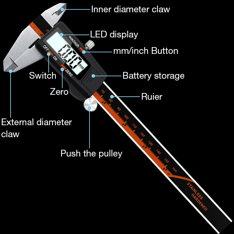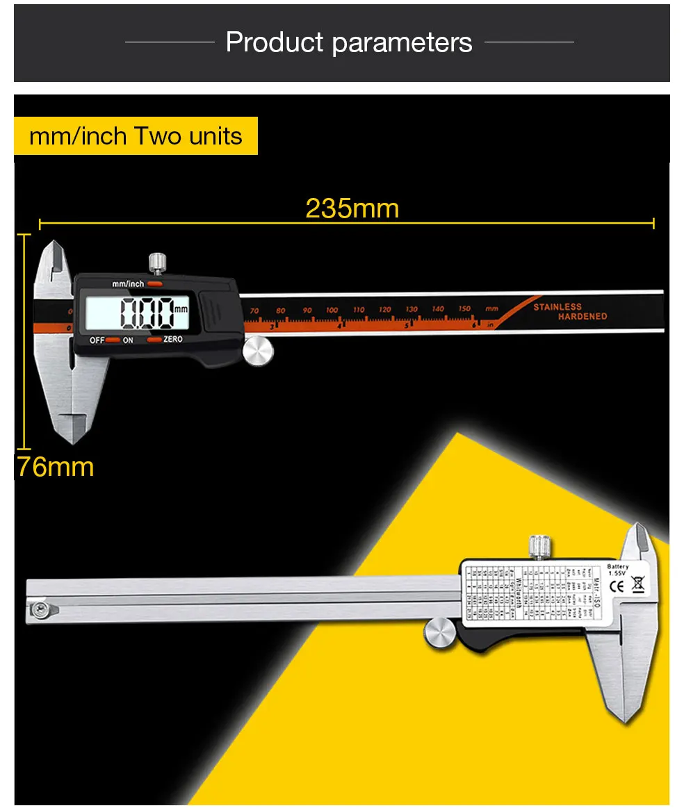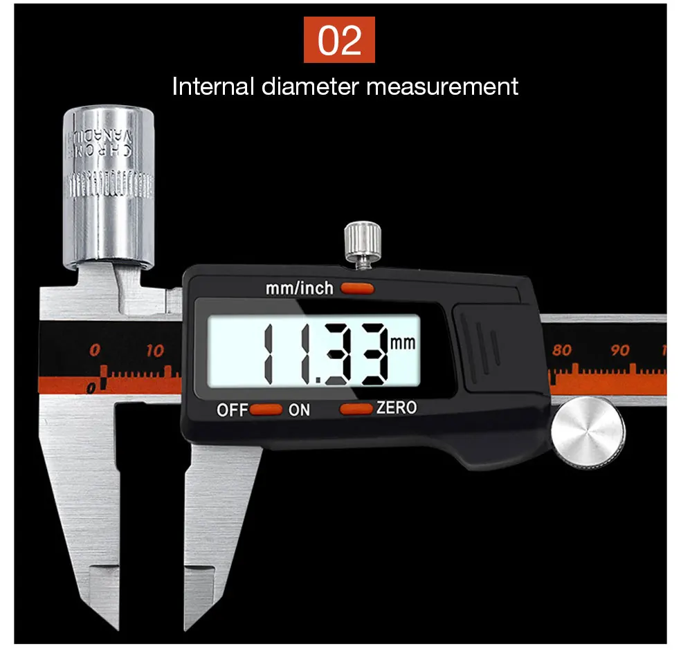 Цифровой штангенциркуль, электронный нутромер из нержавеющей стали, 6 дюймов, 0-150 мм