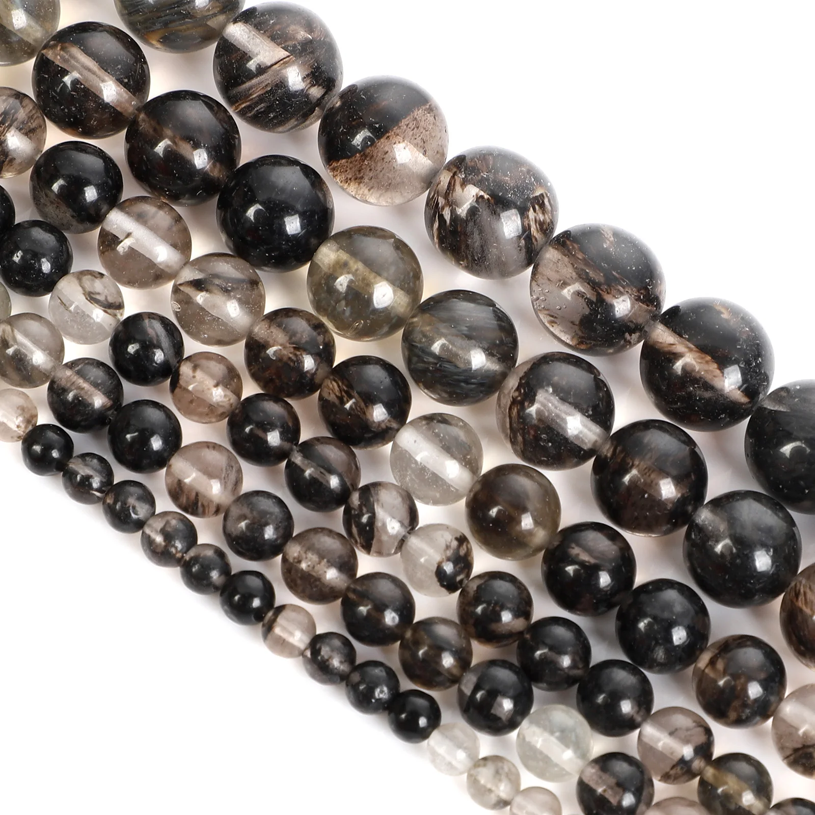 Круглые бусины для украшений сделай сам, изящные бусины из натурального камня, турмалина, арбуза, черного и белого цвета, россыпью, для изготовления браслетов для рукоделия, нити 4-12 мм