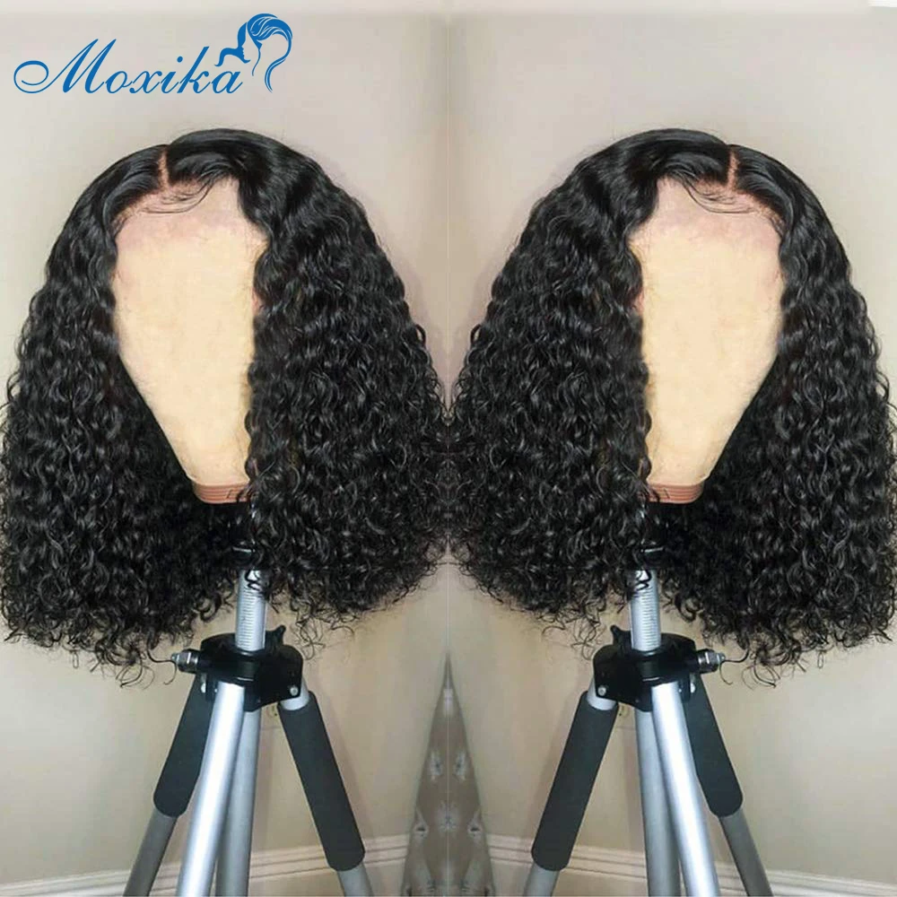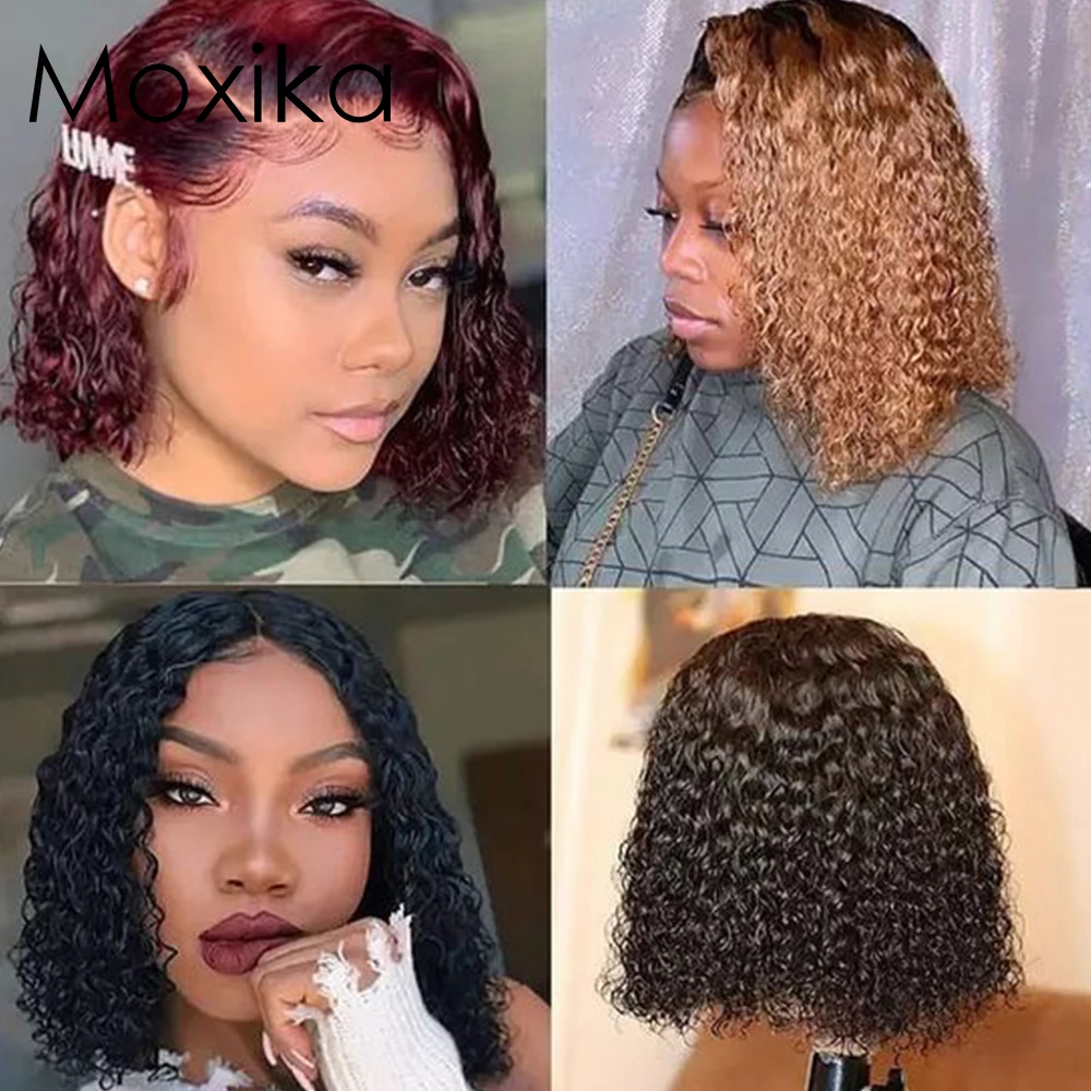 Парик с кружевной застежкой, короткий парик Боб, вьющиеся передние парики из человеческих волос на сетке, 4x4, предварительно выщипанные бразильские волосы, парик без повреждений, 180 плотный вьющийся парик