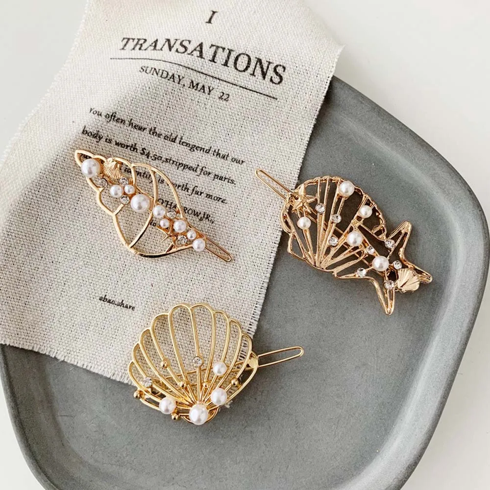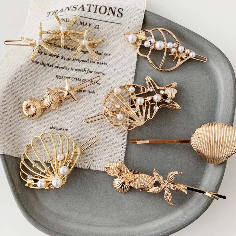 Заколка для волос женская, в виде морской звезды, с жемчужной ракушкой, украшение для волос, 2020