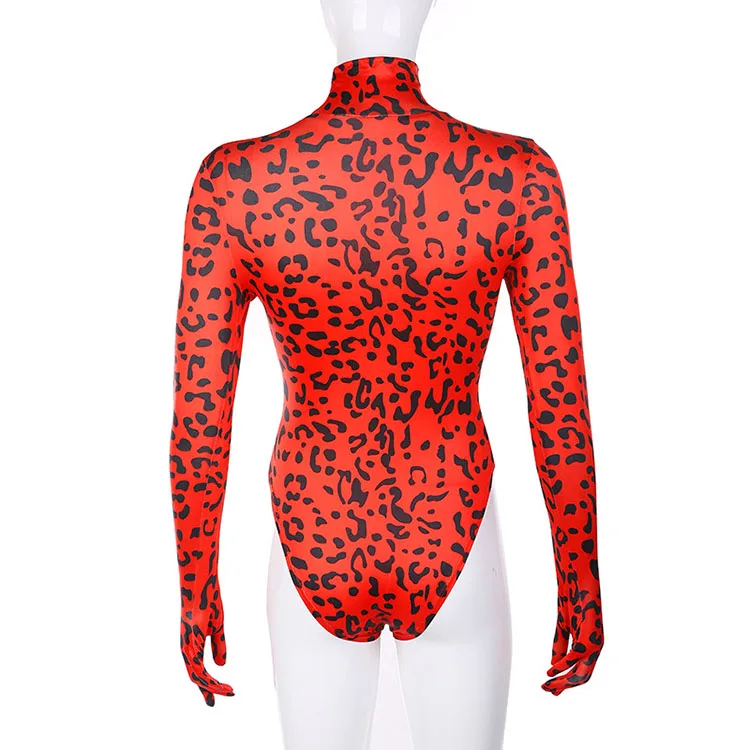 Европейский стиль, Цельный боди с высоким воротом, красный Леопардовый принт, боди, красный, зеленый, синий, фиолетовый, DJ Singer, танцевальный костюм для сцены