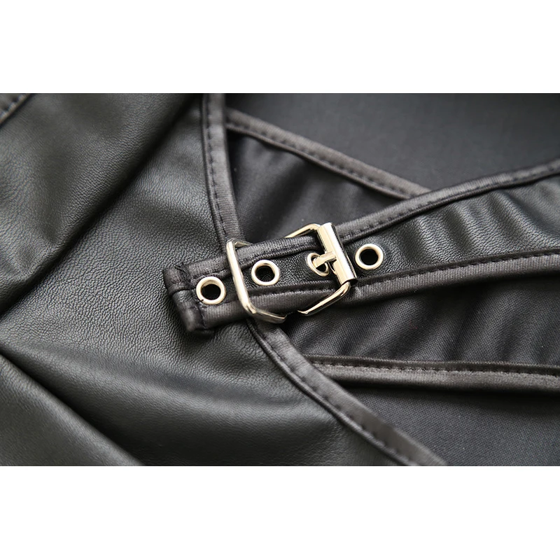 Черные кожаные трусики, сексуальное нижнее белье, мини-юбка, фетиш,...
