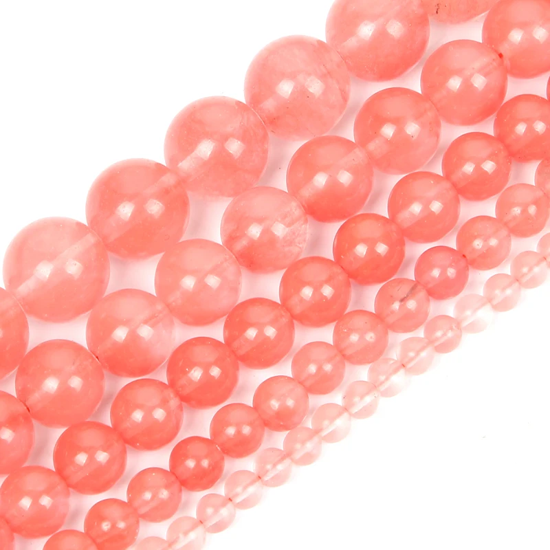 Круглые бусины-шармы из натурального розового арбуза и турмалина, незакрепленные бусины для изготовления ювелирных изделий, рукоделия, браслетов, нитка 4-12 мм