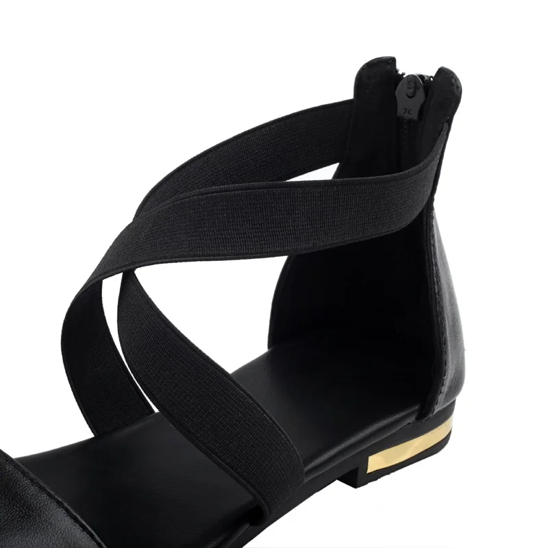 Босоножки женские кожаные, на плоской подошве, черные, на молнии, л...
