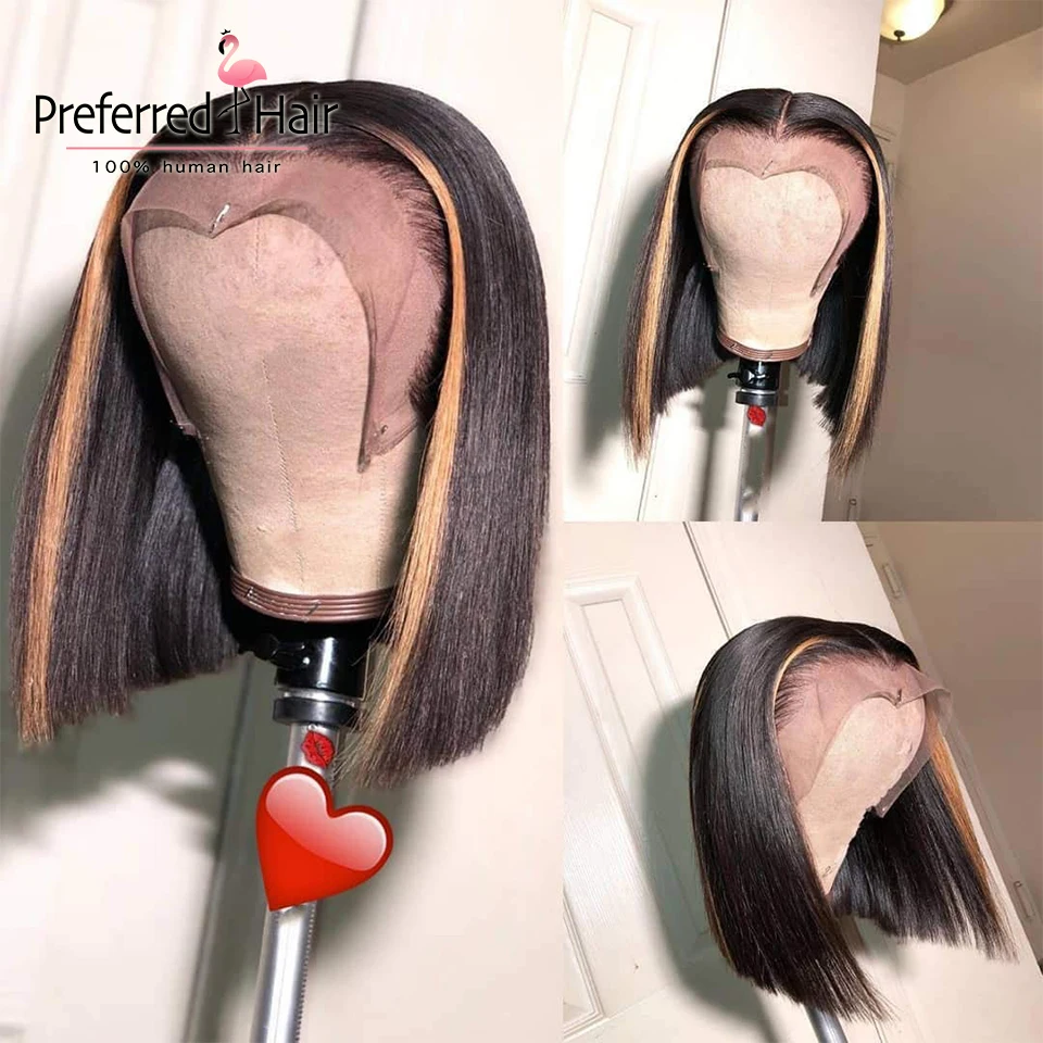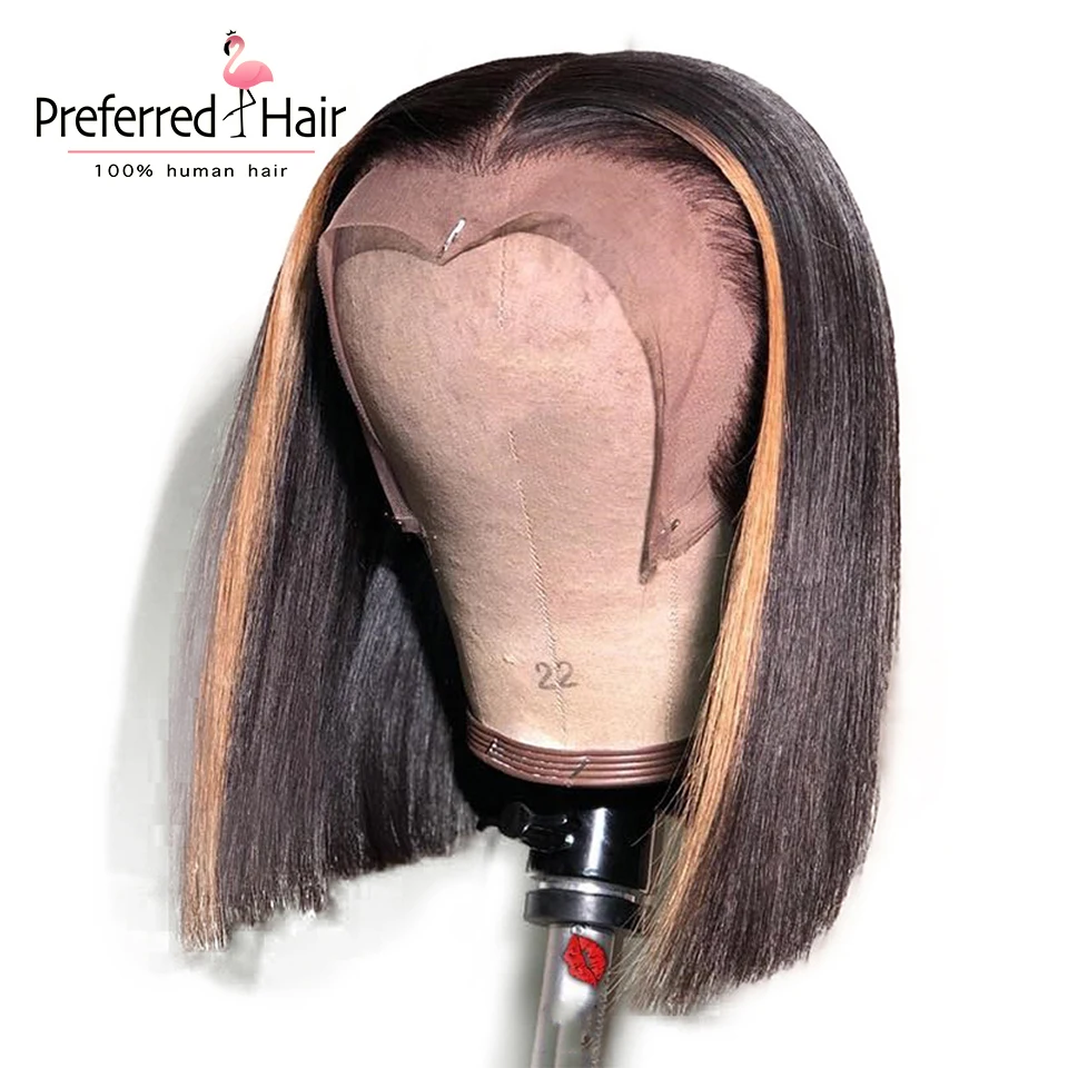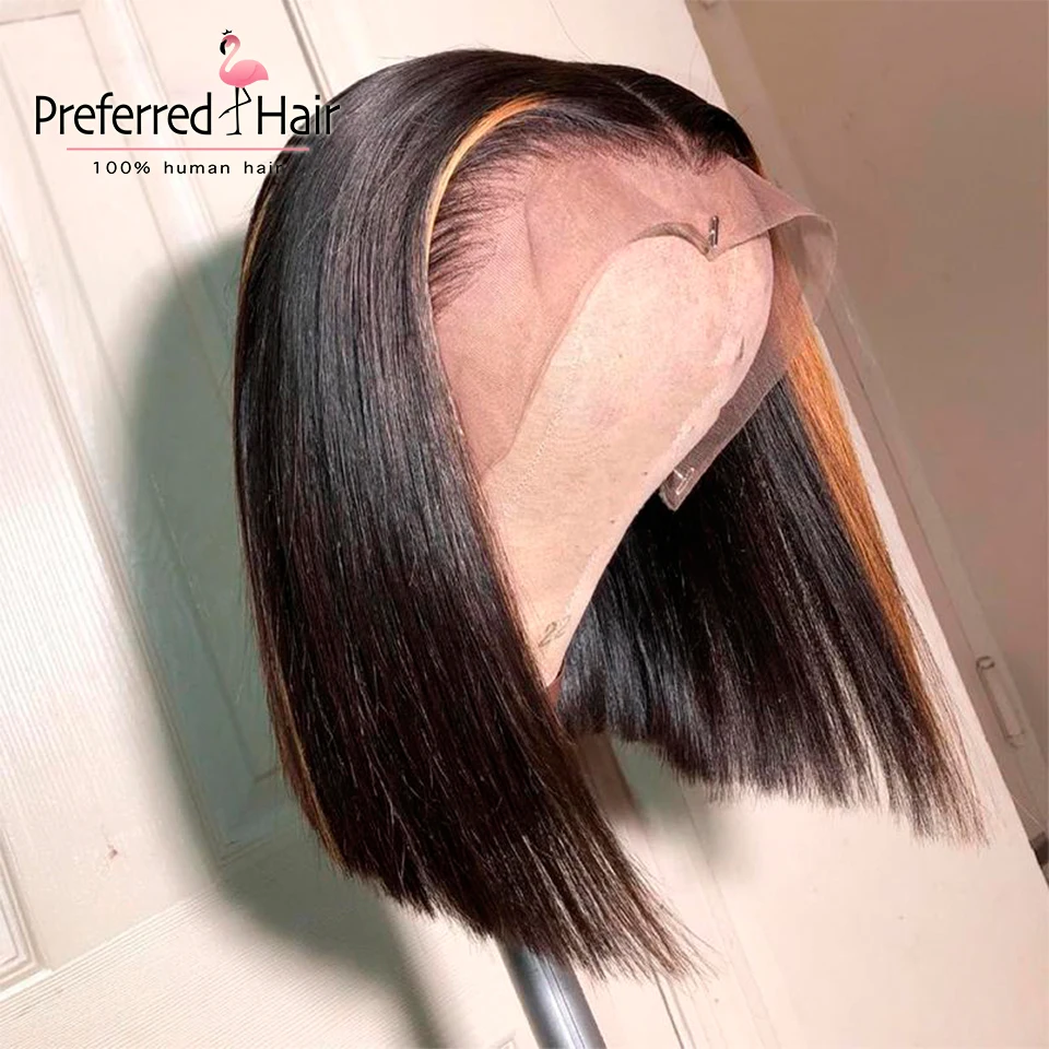 Предпочтительный синий парик Боб Омбре, предварительно выщипанный 13x 6, парик на сетке спереди, бразильский, Реми, розовый, хайлайтер, парик, человеческие волосы для женщин