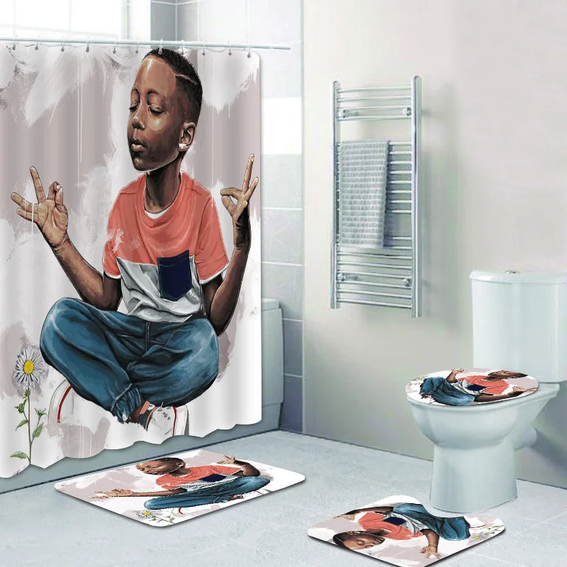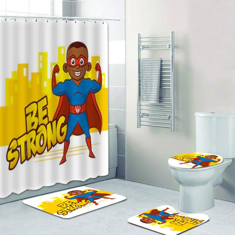 Занавеска для душа с героями мультфильмов Be Strong, черная занавеска для душа для мальчиков, набор для ванной, афро-афроамериканский принц, занавеска для ванной, коврик для детей