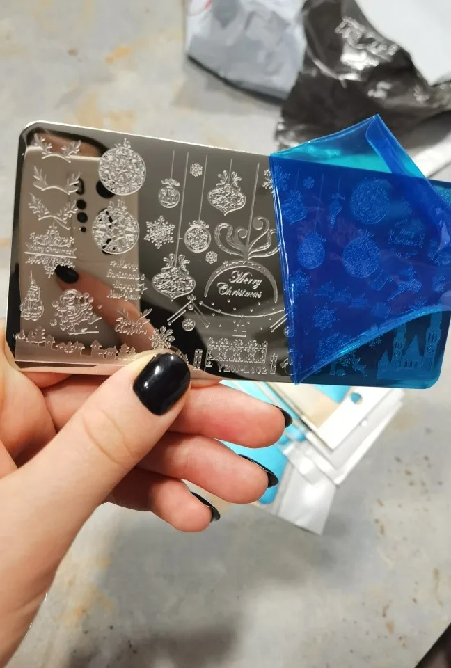 Снимите пленку с пластины,простите жидкостью для снятия лака или гель лака.Без примесей масел.Не давите на штамп,лёгкий перекат,тогда всё получится.Используйте специальные краски для стемпинга.