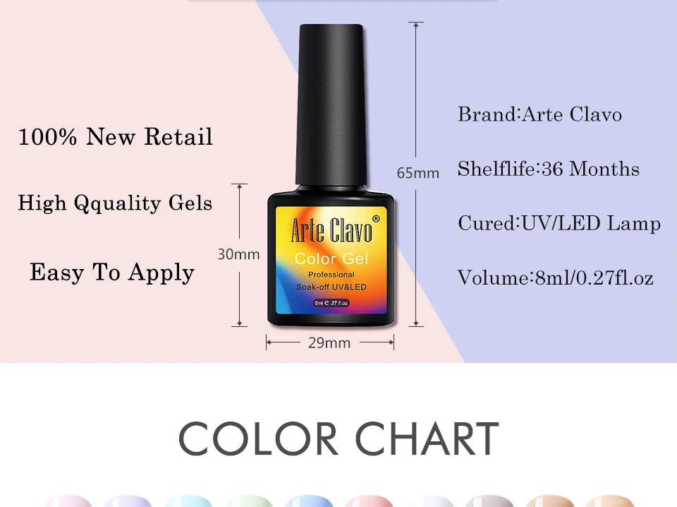 Arte Clave Новое поступление Гель-лак для ногтей отмачиваемый лак для дизайна ногтей лак 8 мл LED розовый красный блестящий гель для ногтей все для маникюра