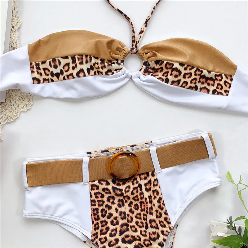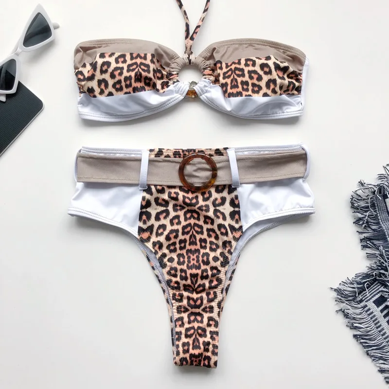 Бикини Mossha бандо 2020 mujer, купальник с леопардовым принтом, женский купальный костюм с поясом, купальная одежда с высокой талией, женская летняя одежда