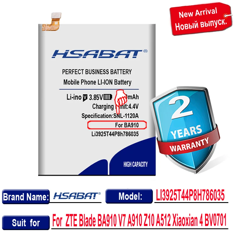 Аккумулятор HSABAT Li3925T44P8h786035 3800 мАч для ZTE Blade BA910 A910 A512 Xiaoxian 4 BV0701 V8 V0800 BV0800 V7 V7Plus V770
