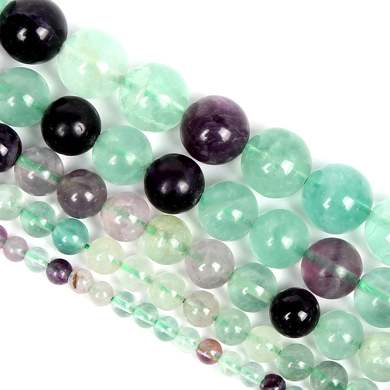 Оптовая продажа, бусина из натурального камня 4-12 мм, Гладкая круглая свободная бусина из флюорита для изготовления ювелирных изделий сделай сам, шарм, браслет, ожерелье ручной работы