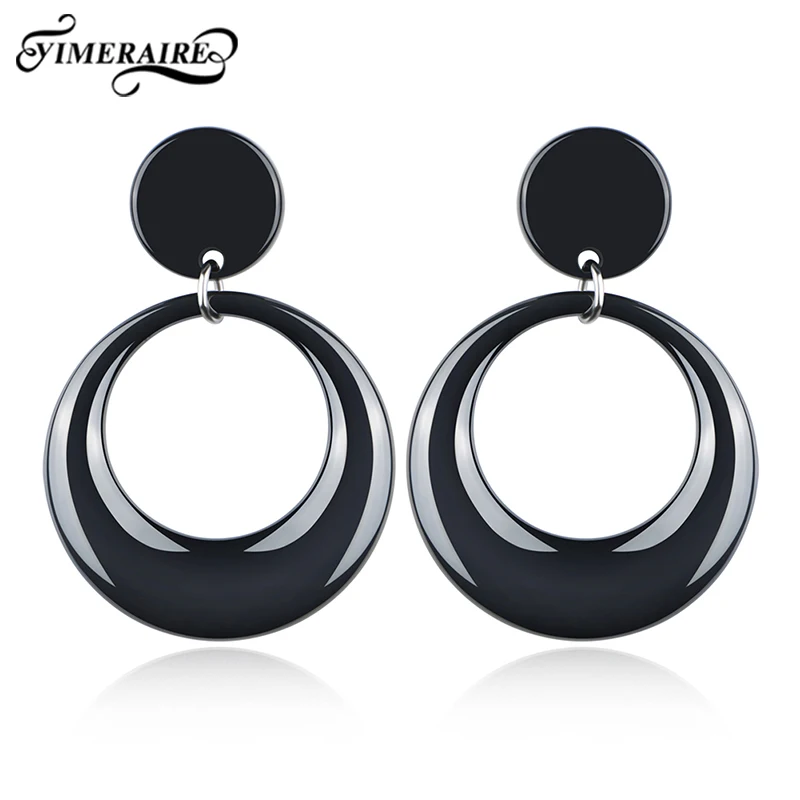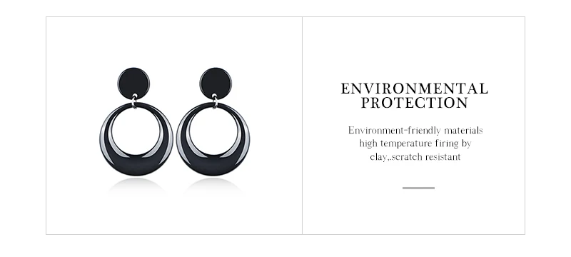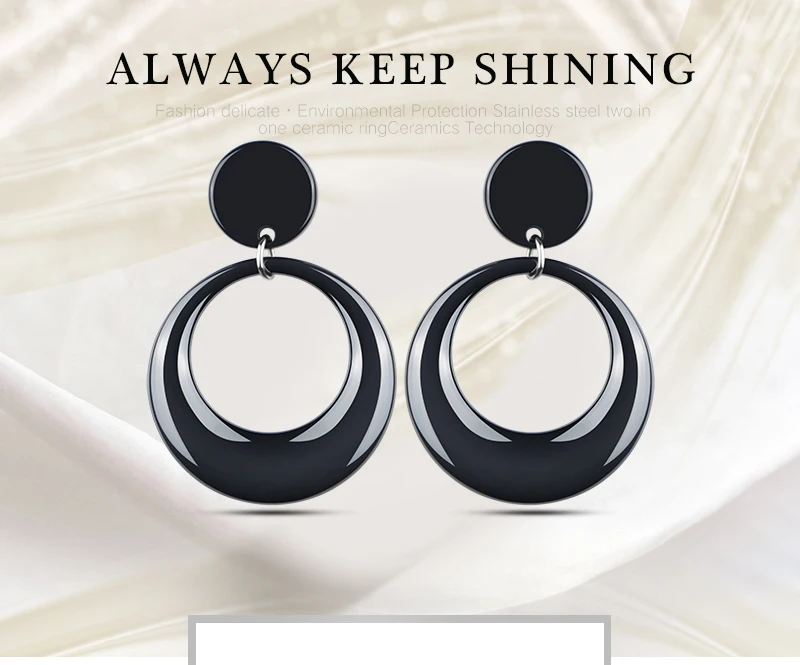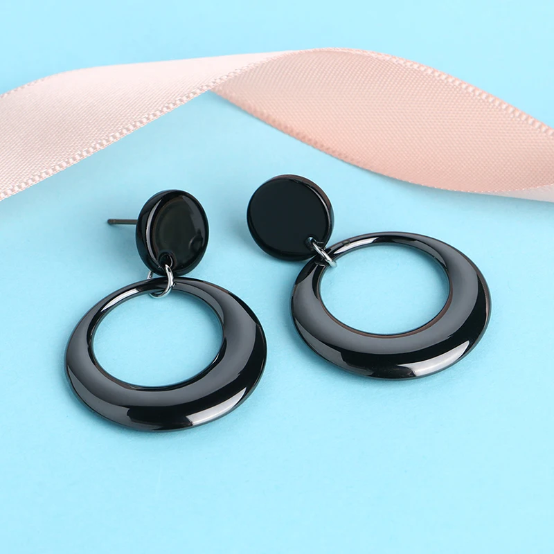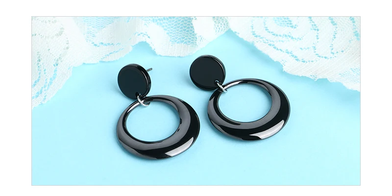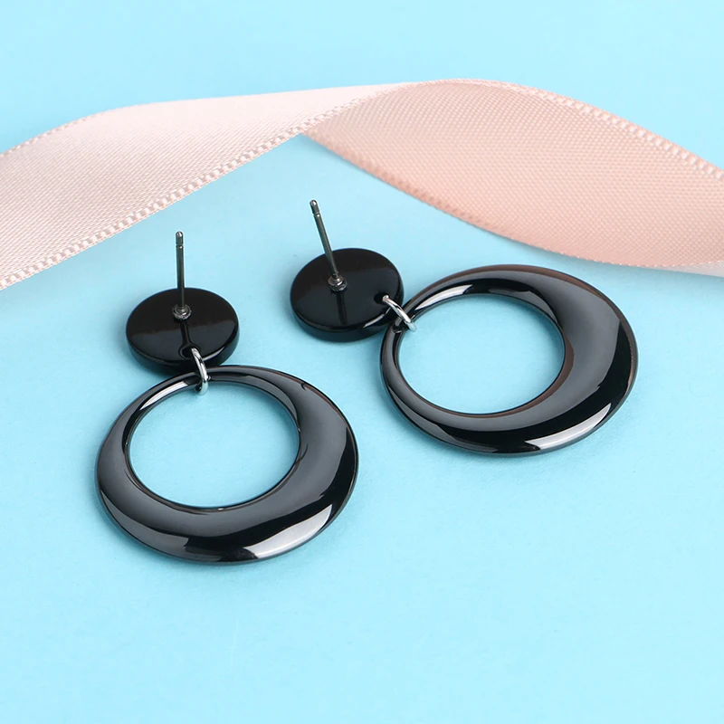 Серьги-подвески женские керамические, черные, полые, круглые, элегантные