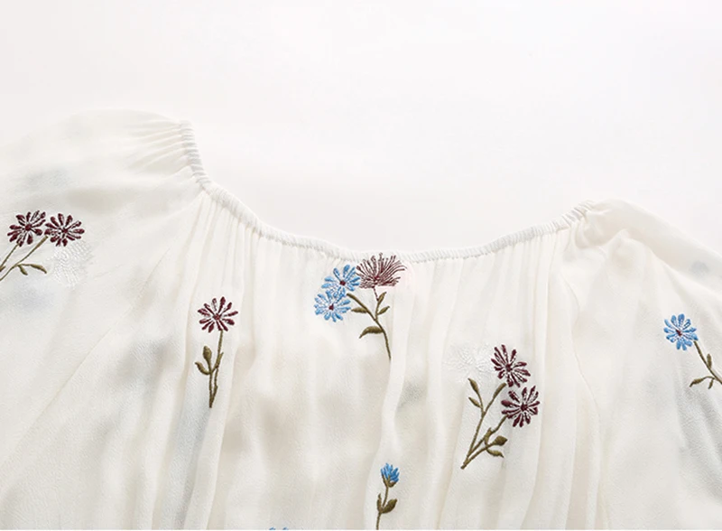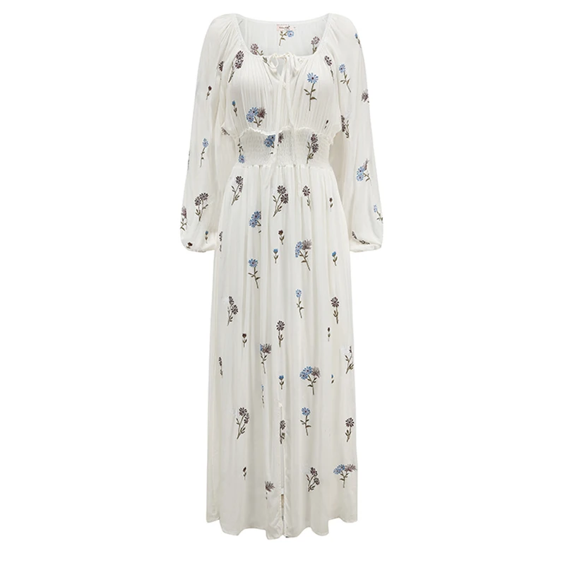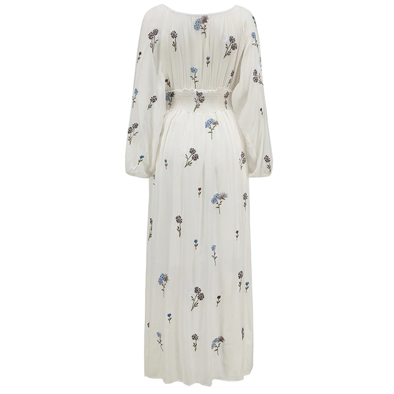 Женское длинное платье с цветочной вышивкой, белое эластичное платье-трапеция в стиле бохо, летнее платье макси с рукавами-баллонами, 100%