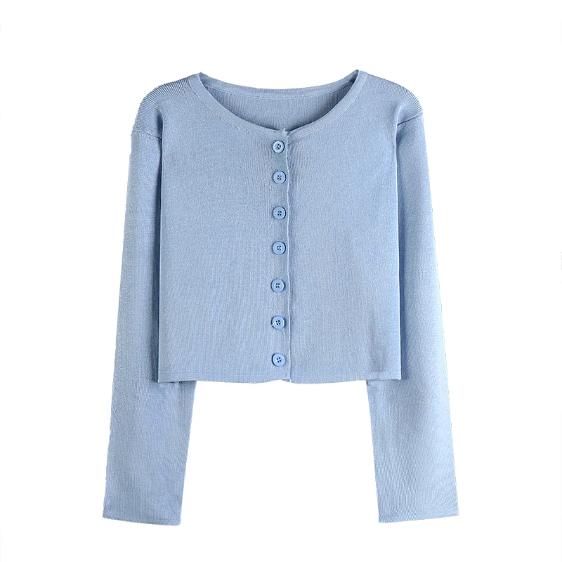 Весенний женский синий кардиган 2022, укороченный топ в рубчик, вязаный кардиган с длинным рукавом, Короткие топы, Женский Повседневный облегающий Укороченный кардиган