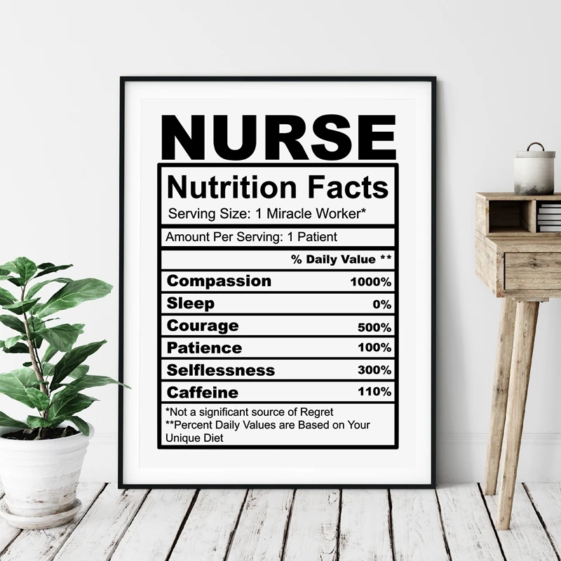 Медсестра подарок медсестра питание факты детской черный белый плакат медсестра признательность Искусство Холст Картина офис декор стен