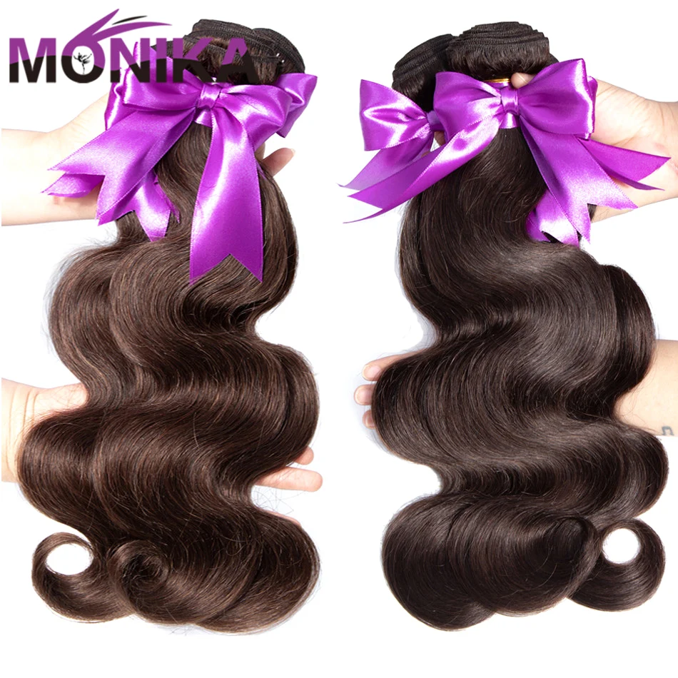 Monika, цветные пряди #4 #2, коричневые пряди, бразильские волнистые пряди, не Реми, человеческие волосы, пряди, 8-26 дюймов, наращивание волос