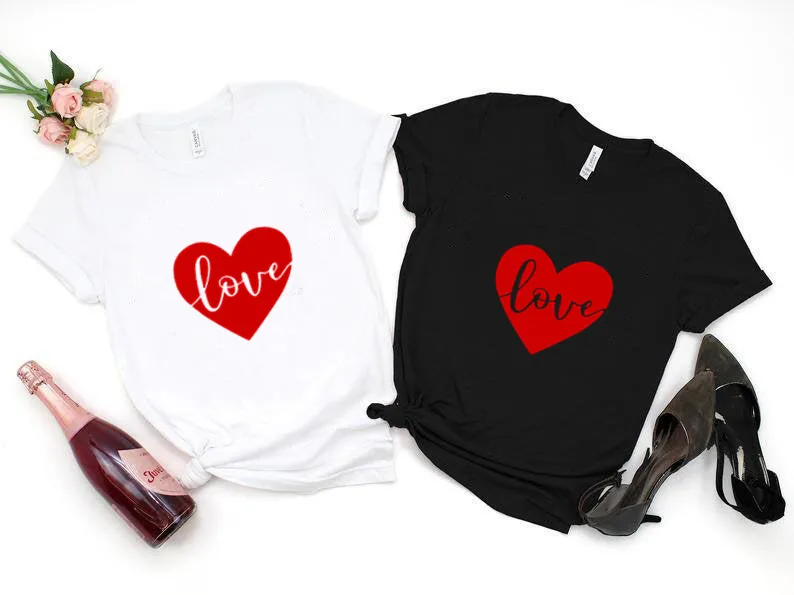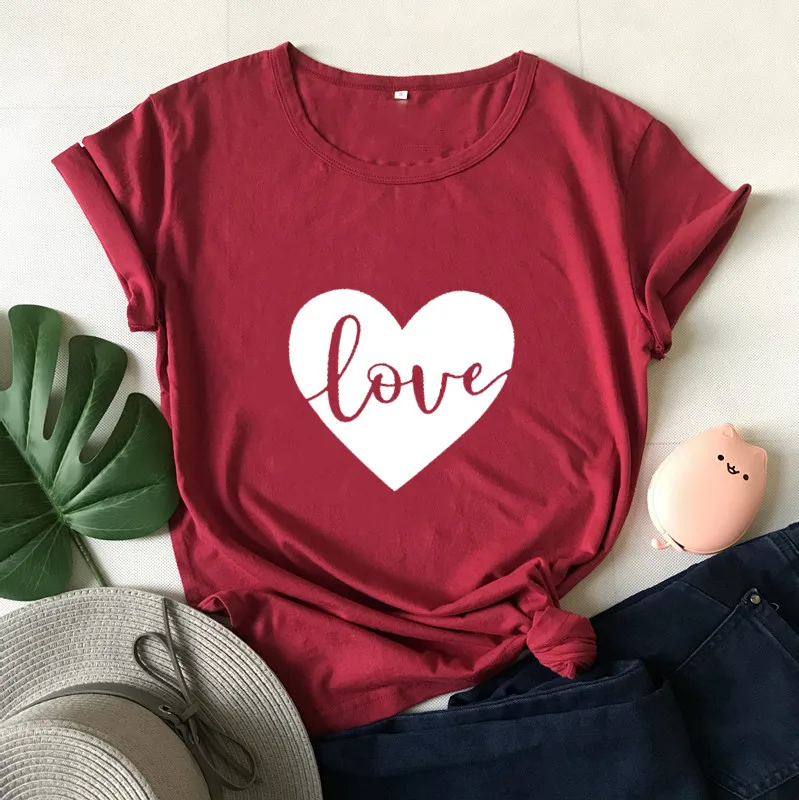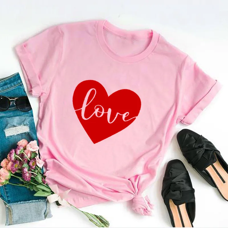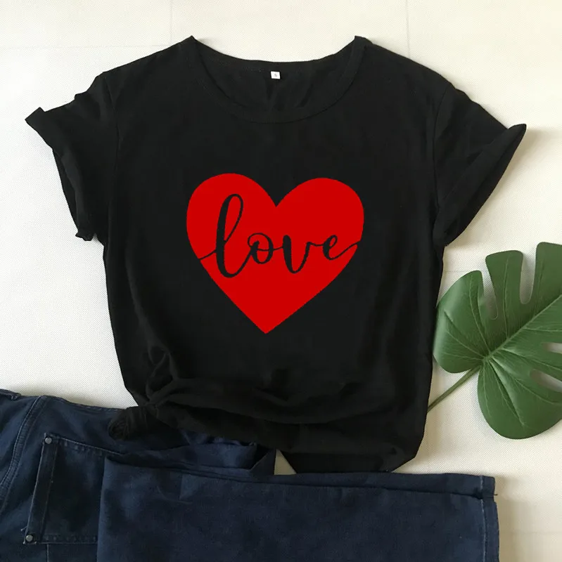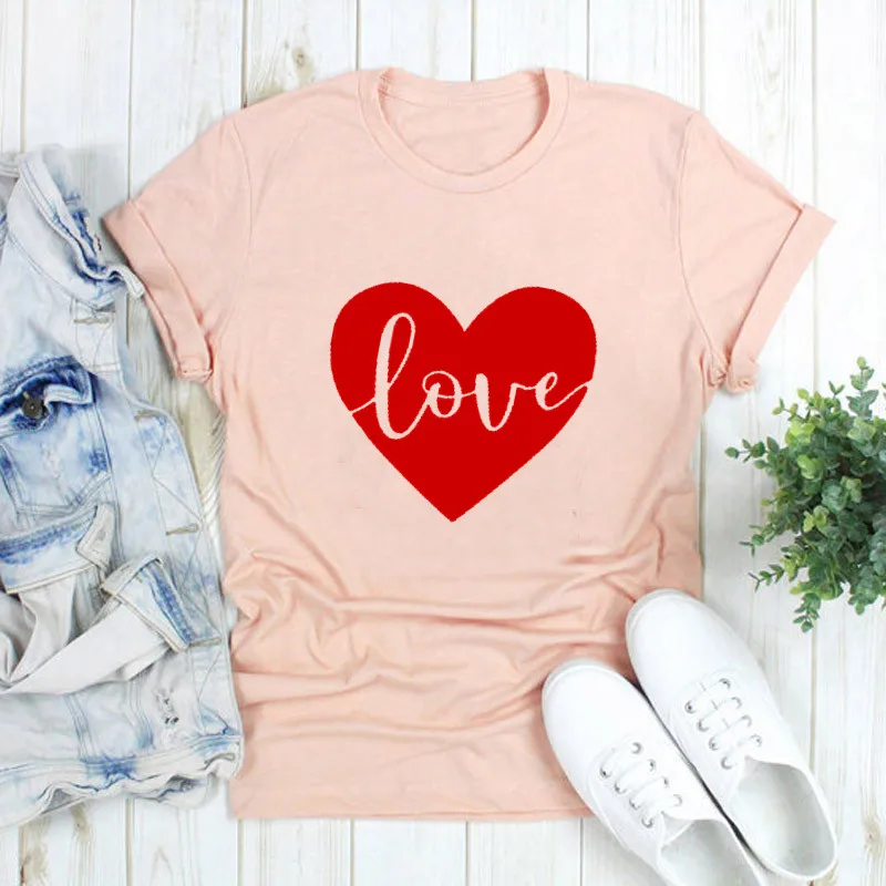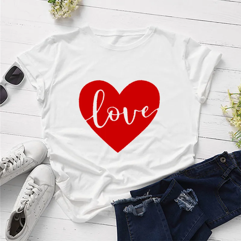 Любовь сердце день Святого Валентина Футболка Мода Красный Графический Хлопок Женские рубашки подарок короткий рукав размера плюс футболки с круглым вырезом унисекс Топы