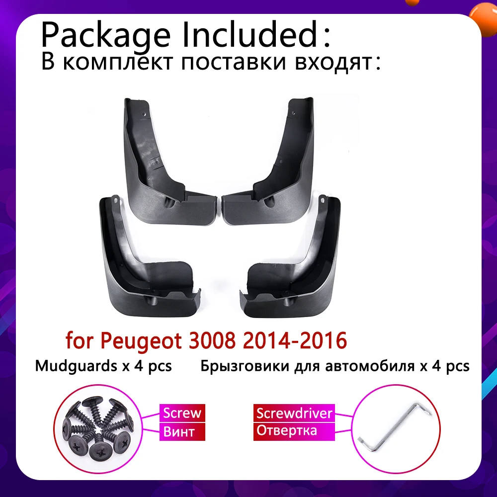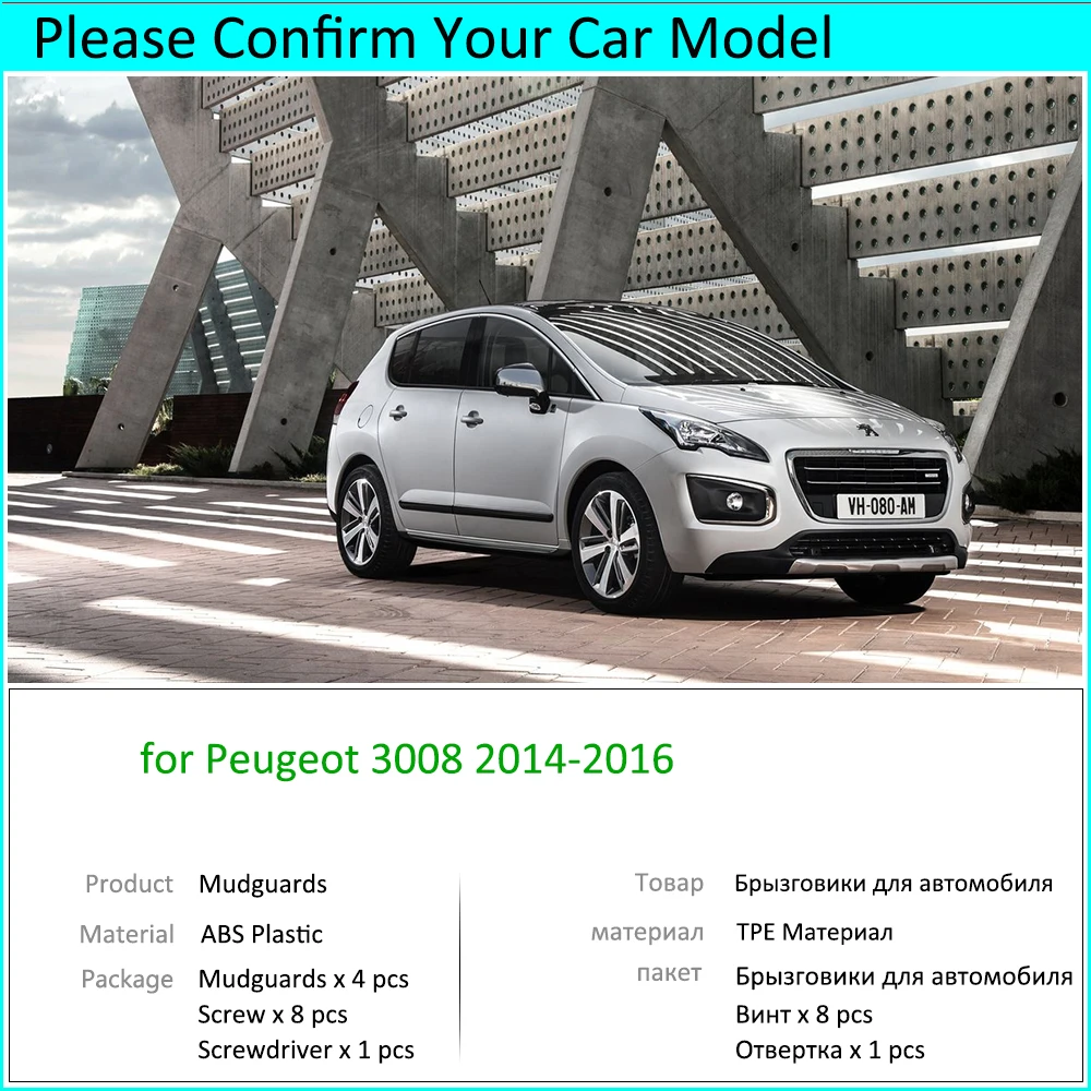 Брызговики для Peugeot 3008 2014 2015 2016 Facelift